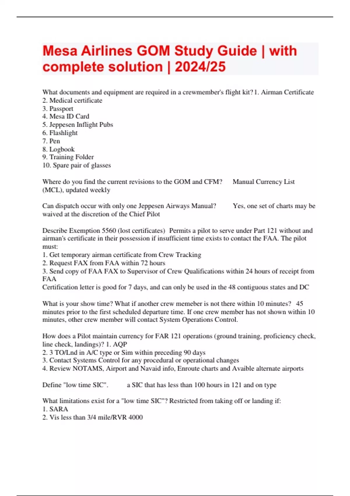 Mesa Airlines GOM Study Guide | with complete solution | 2024/25