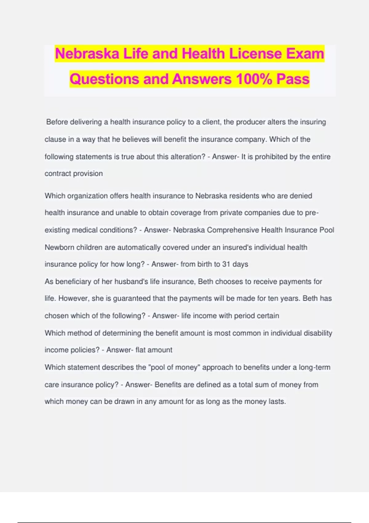 Nebraska Life and Health License Exam Questions and Answers 100% Pass