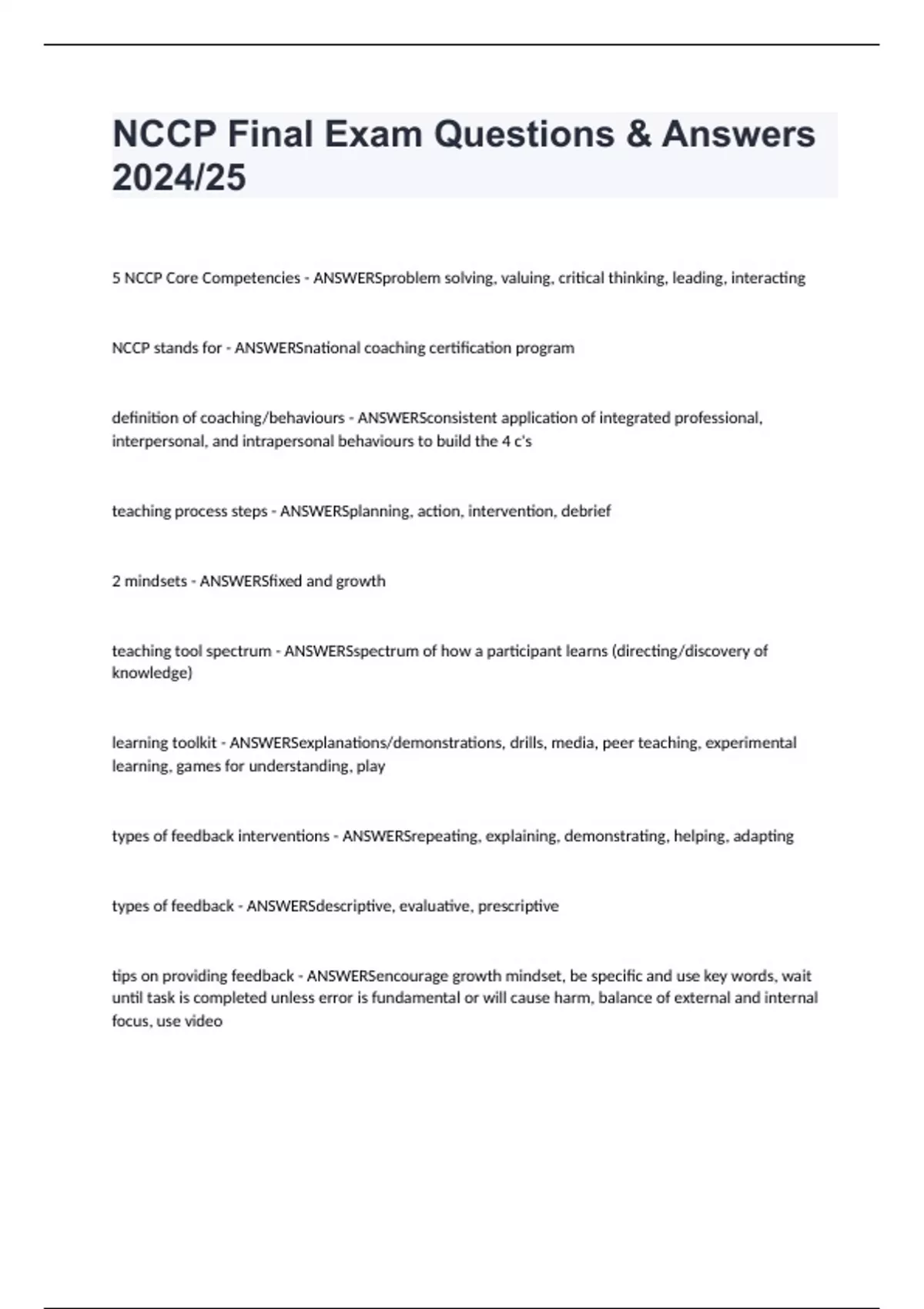 NCCP Final Exam Questions & Answers 2024/25