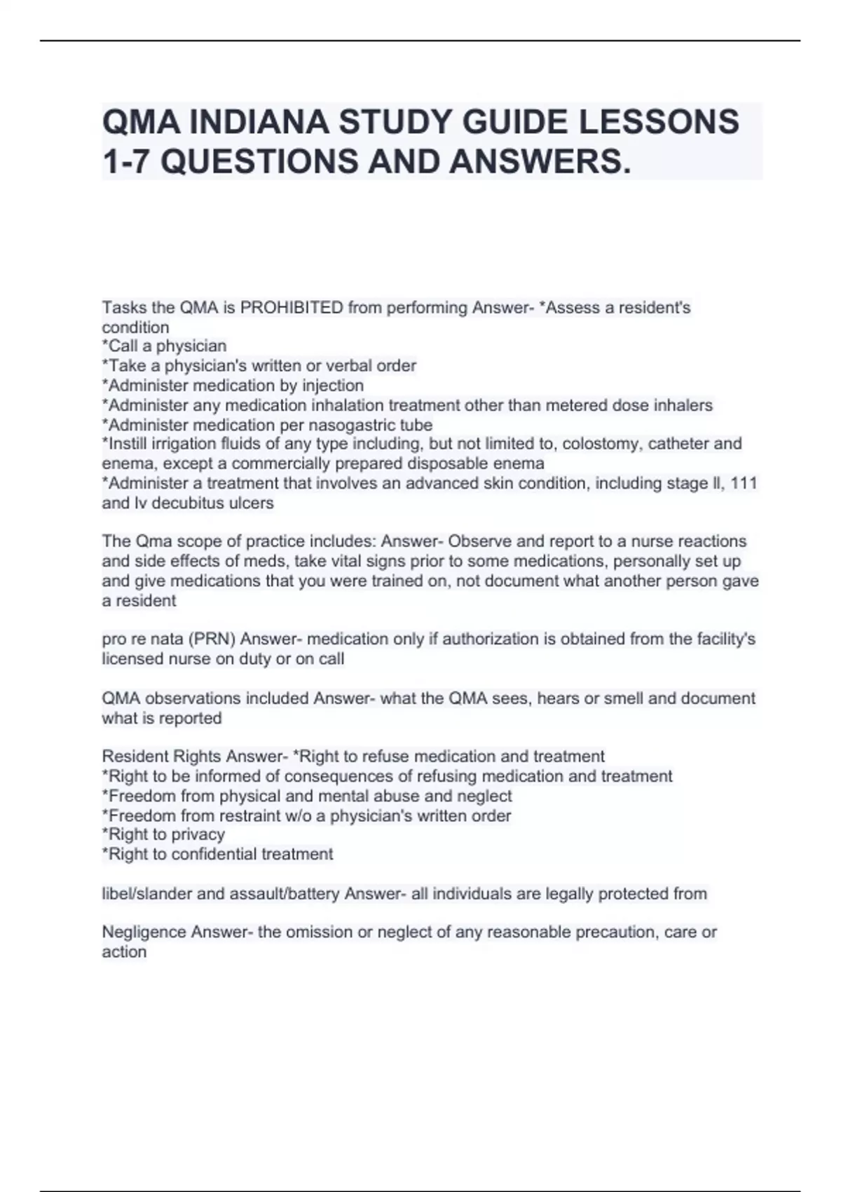 QMA INDIANA STUDY GUIDE LESSONS 1-7 QUESTIONS AND ANSWERS.