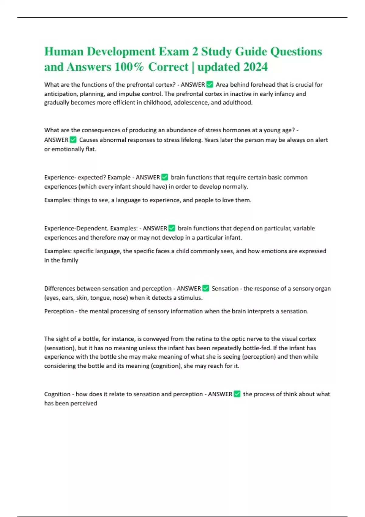 Human Development Exam 2 Study Guide Questions and Answers 100% Correct | updated 2024