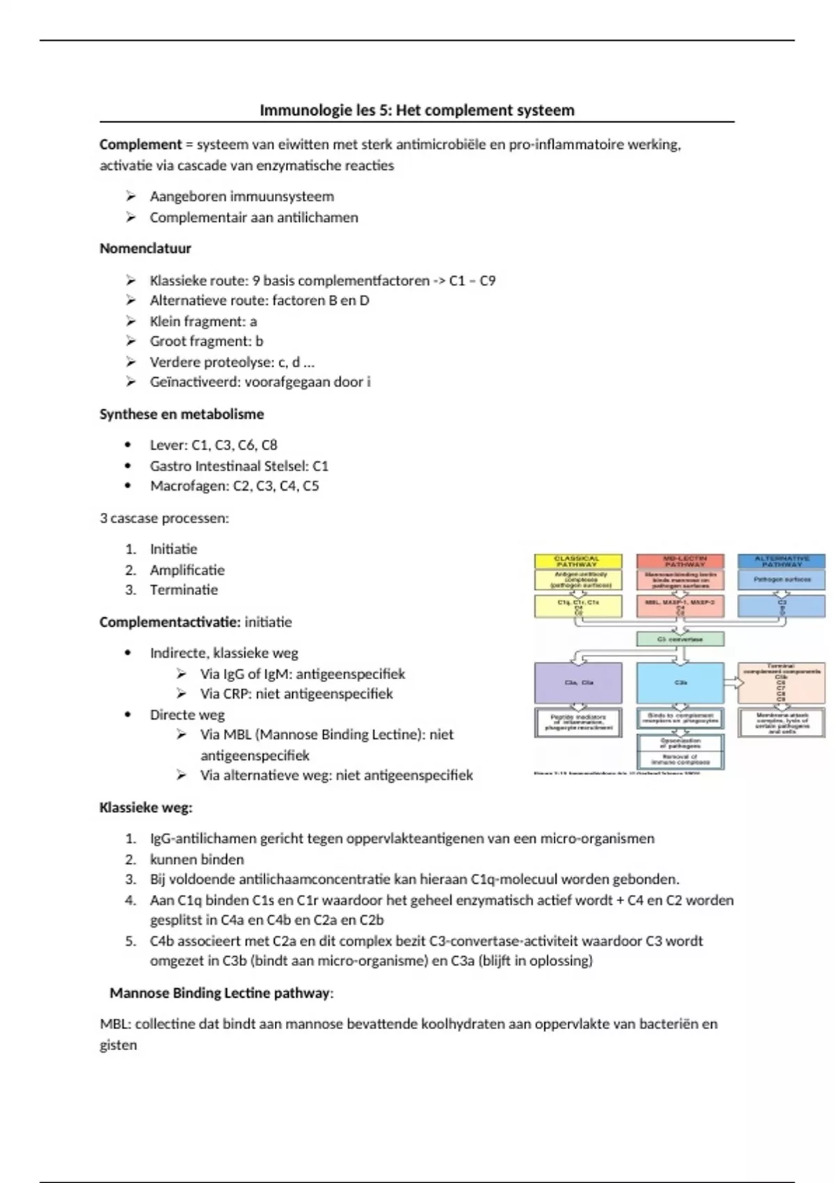 Complement = systeem van eiwitten met sterk antimicrobiële en pro-inflammatoire werking,