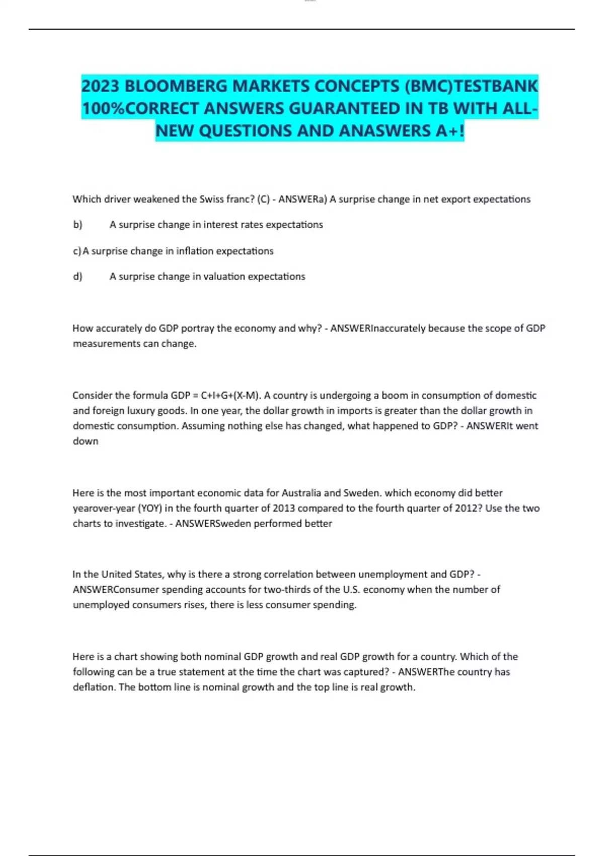 2023 BLOOMBERG MARKETS CONCEPTS (BMC)TESTBANK