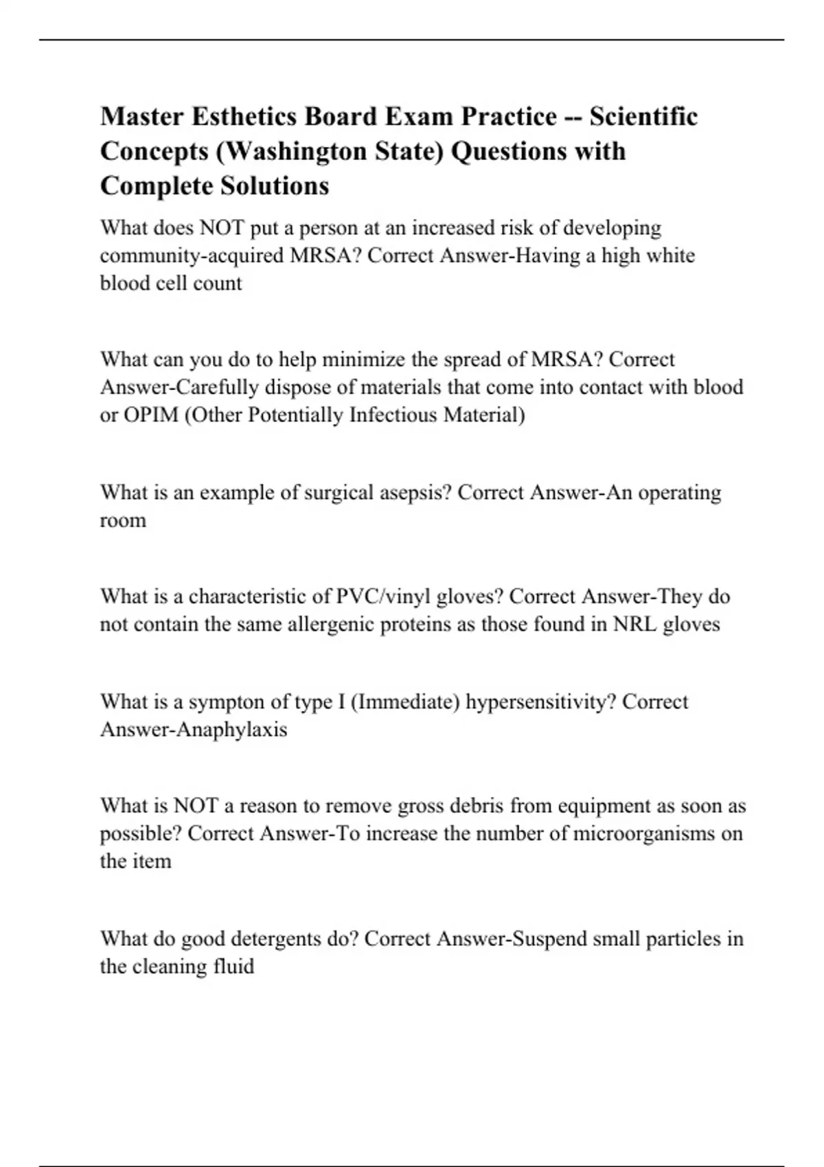 Master Esthetics Board Exam Practice -- Scientific Concepts (Washington State) Questions with Complete Solutions