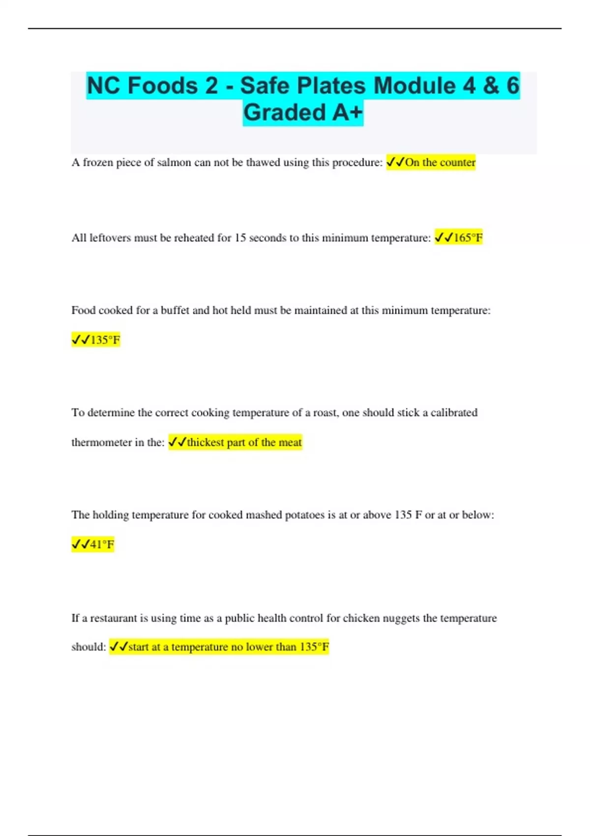 NC Foods 2 - Safe Plates Module 4 & 6 Graded A+
