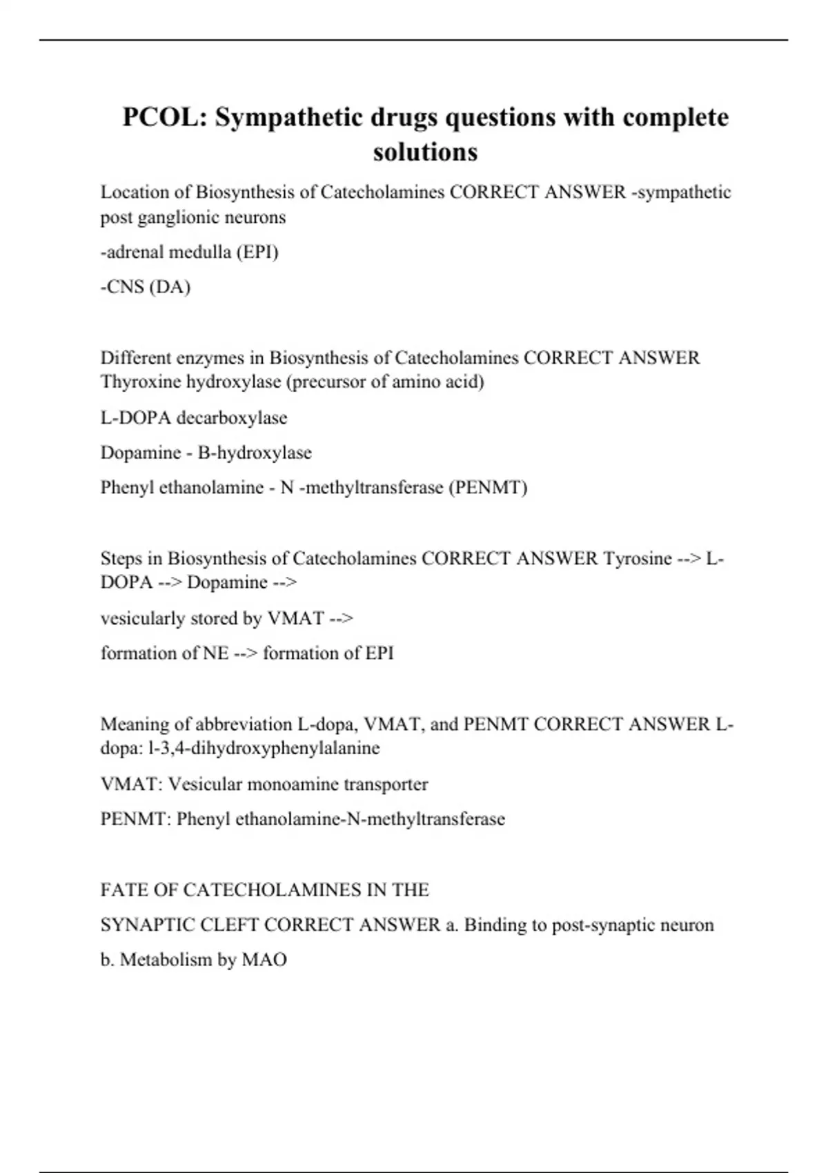 PCOL: Sympathetic drugs questions with complete solutions