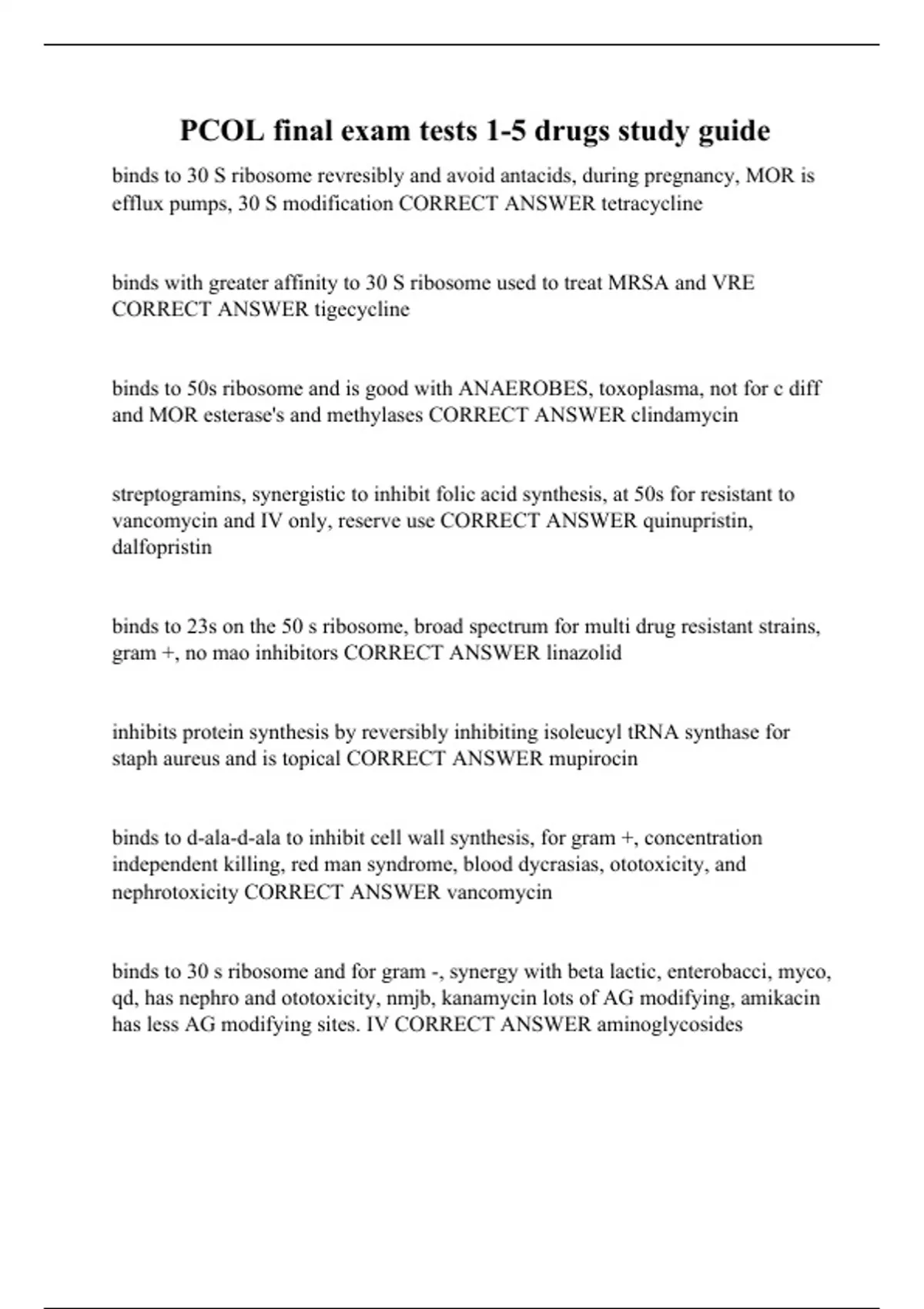 PCOL final exam tests 1-5 drugs study guide
