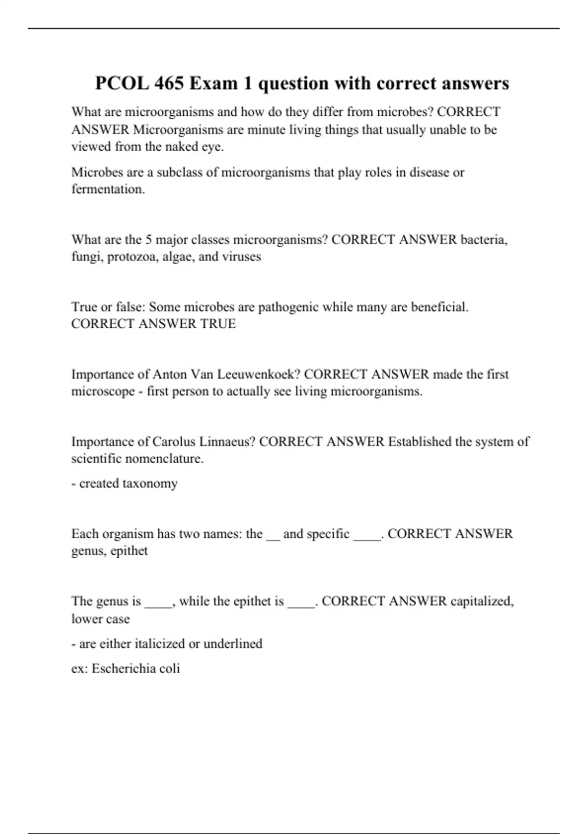 PCOL 465 Exam 1 question with correct answers