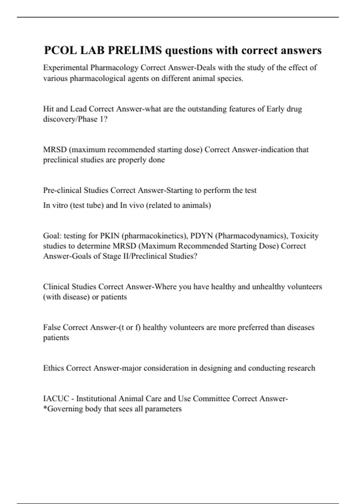 pcol lab prelims questions with correct answers