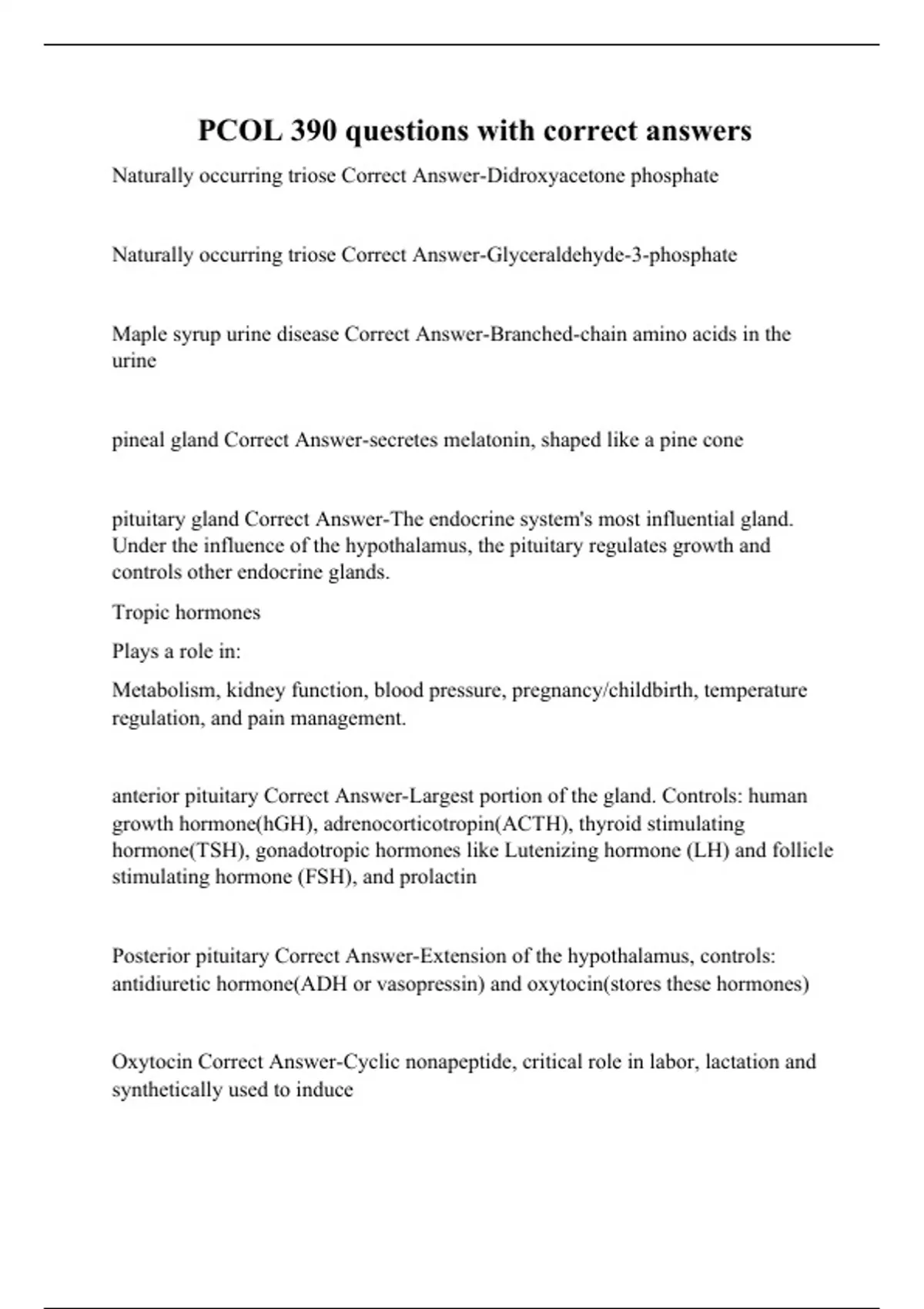 pcol 390 questions with correct answers