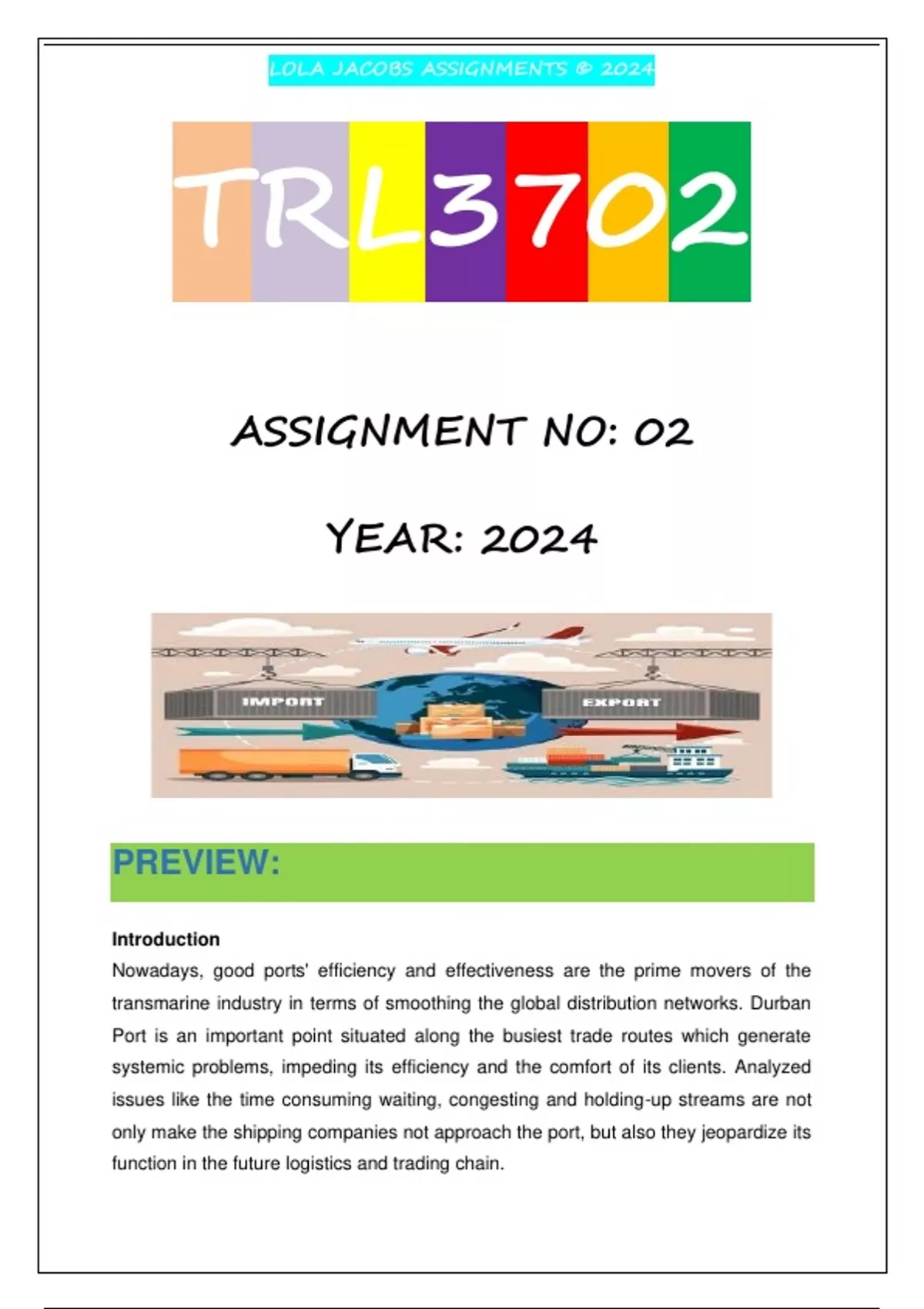 , LOLA JACOBS ASSIGNMENTS © 2024
