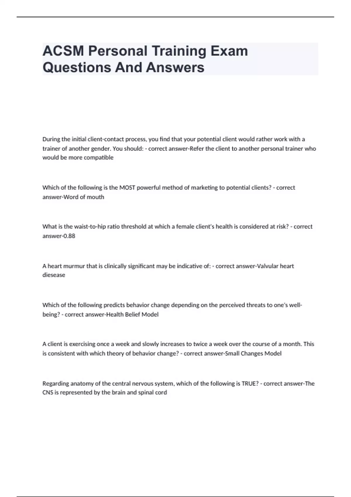 ACSM Personal Training Exam Questions And Answers