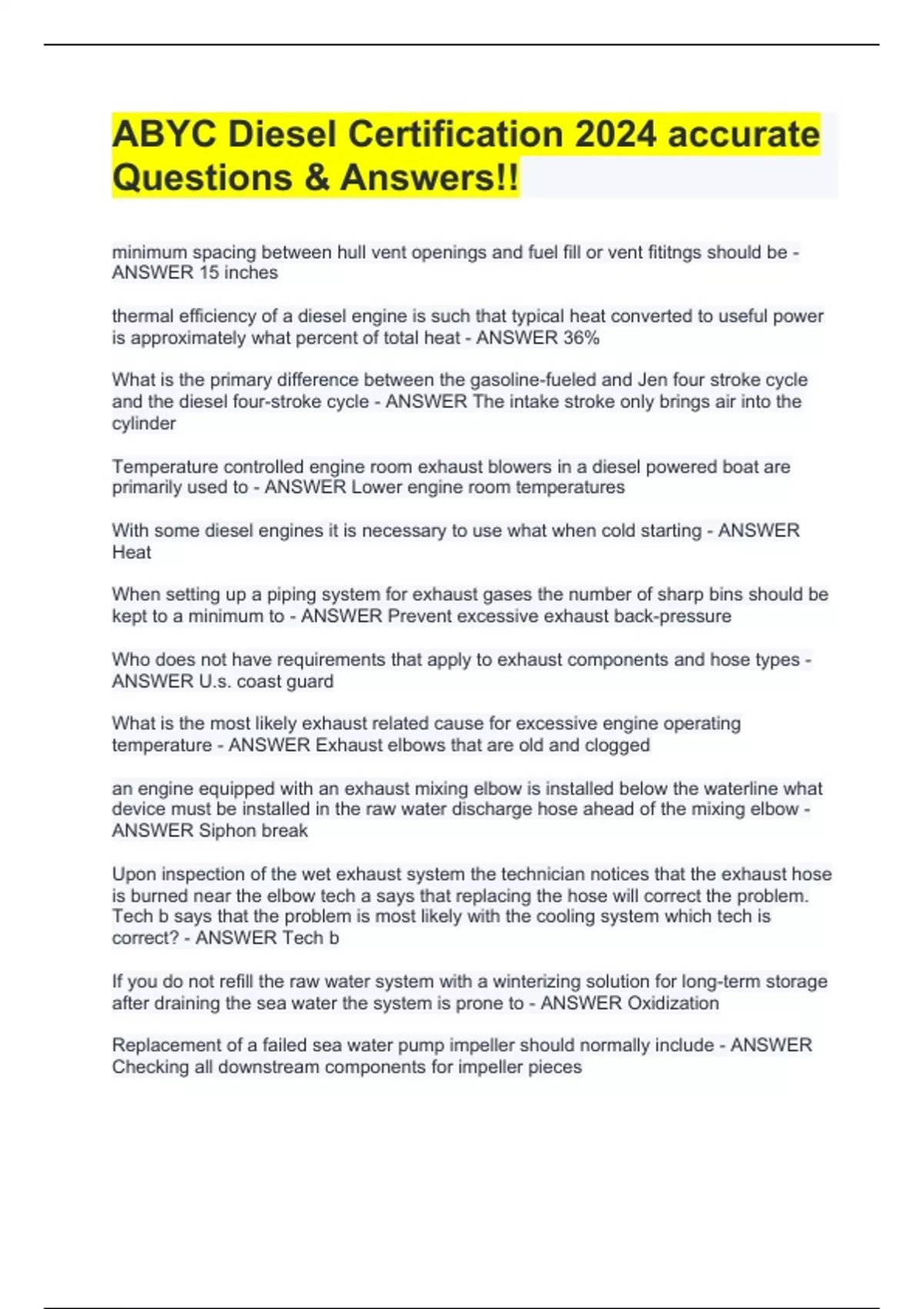 ABYC Diesel Certification 2024 accurate Questions & Answers!!