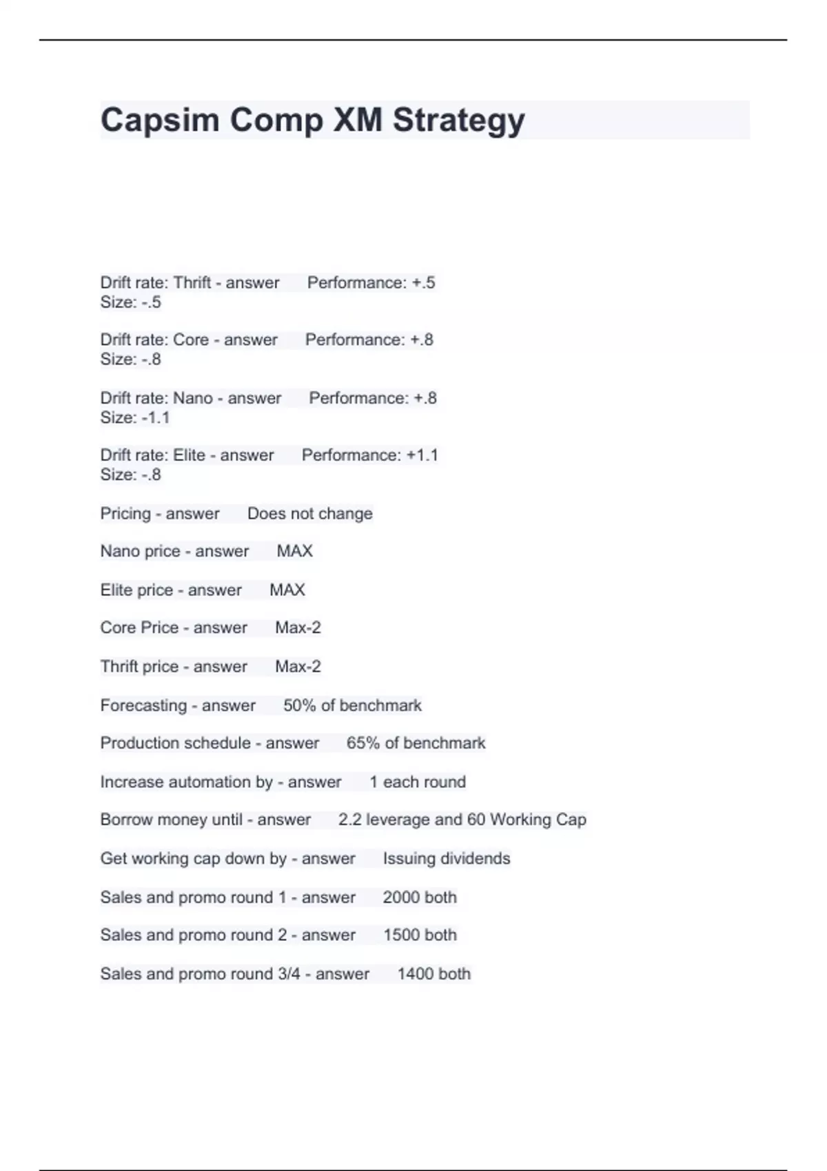 Capsim Comp XM Strategy