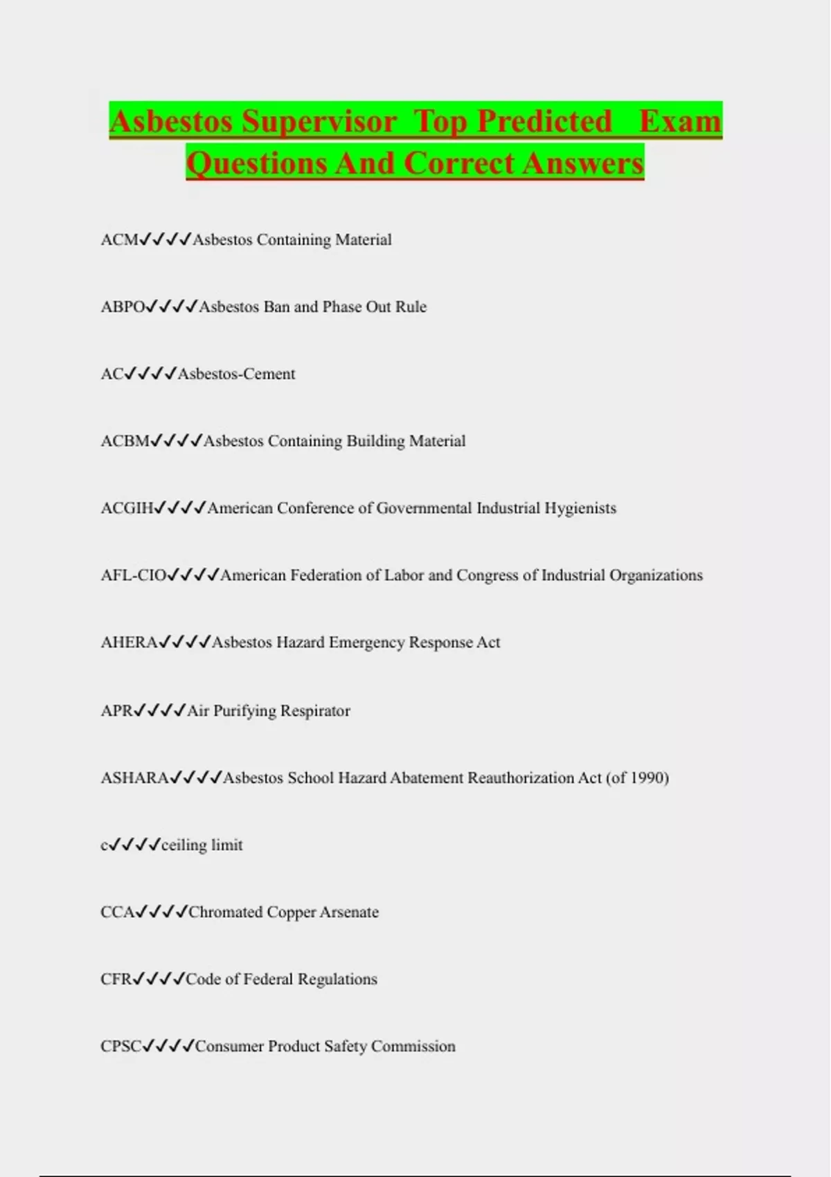 Asbestos Supervisor Top Predicted Exam Questions And Correct Answers