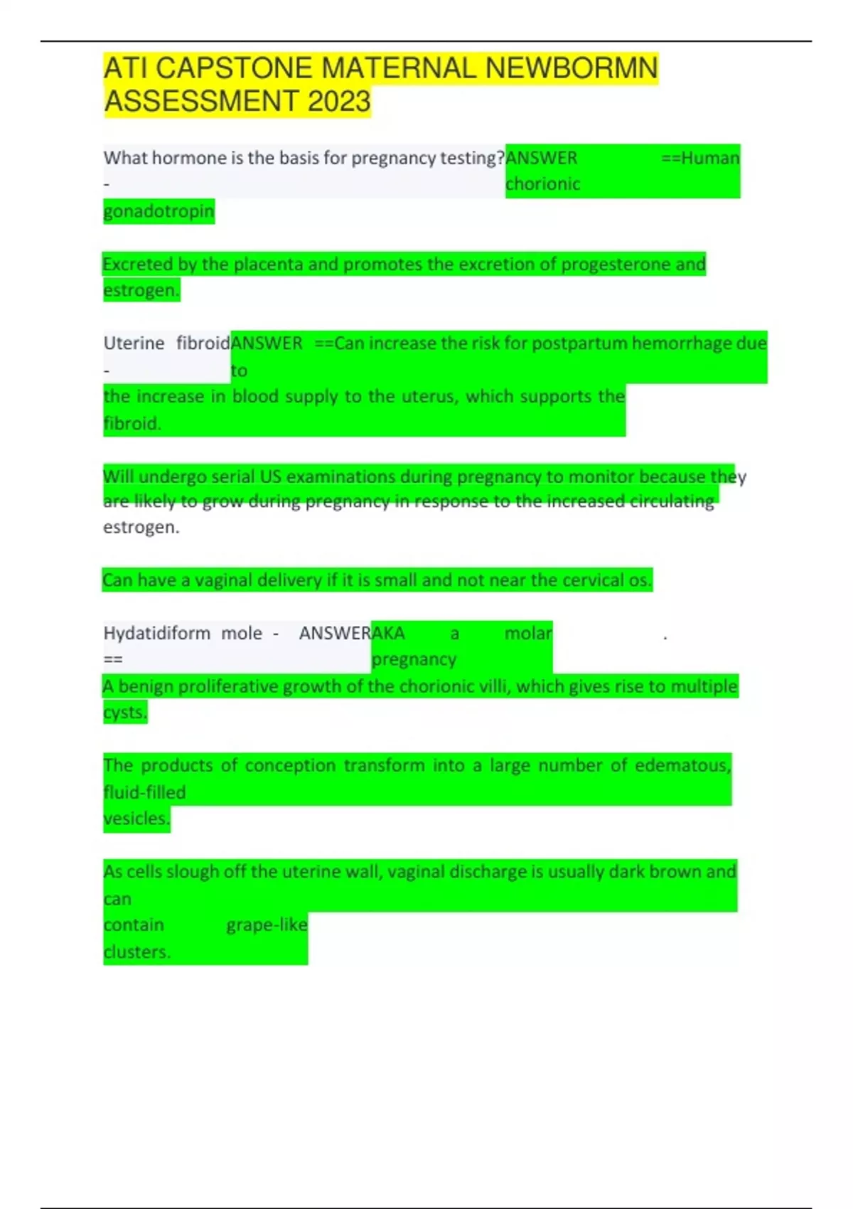 ATI CAPSTONE MATERNAL NEWBORN ASSESSMENT 2023 WITH UPDATED ANSWERS 2024