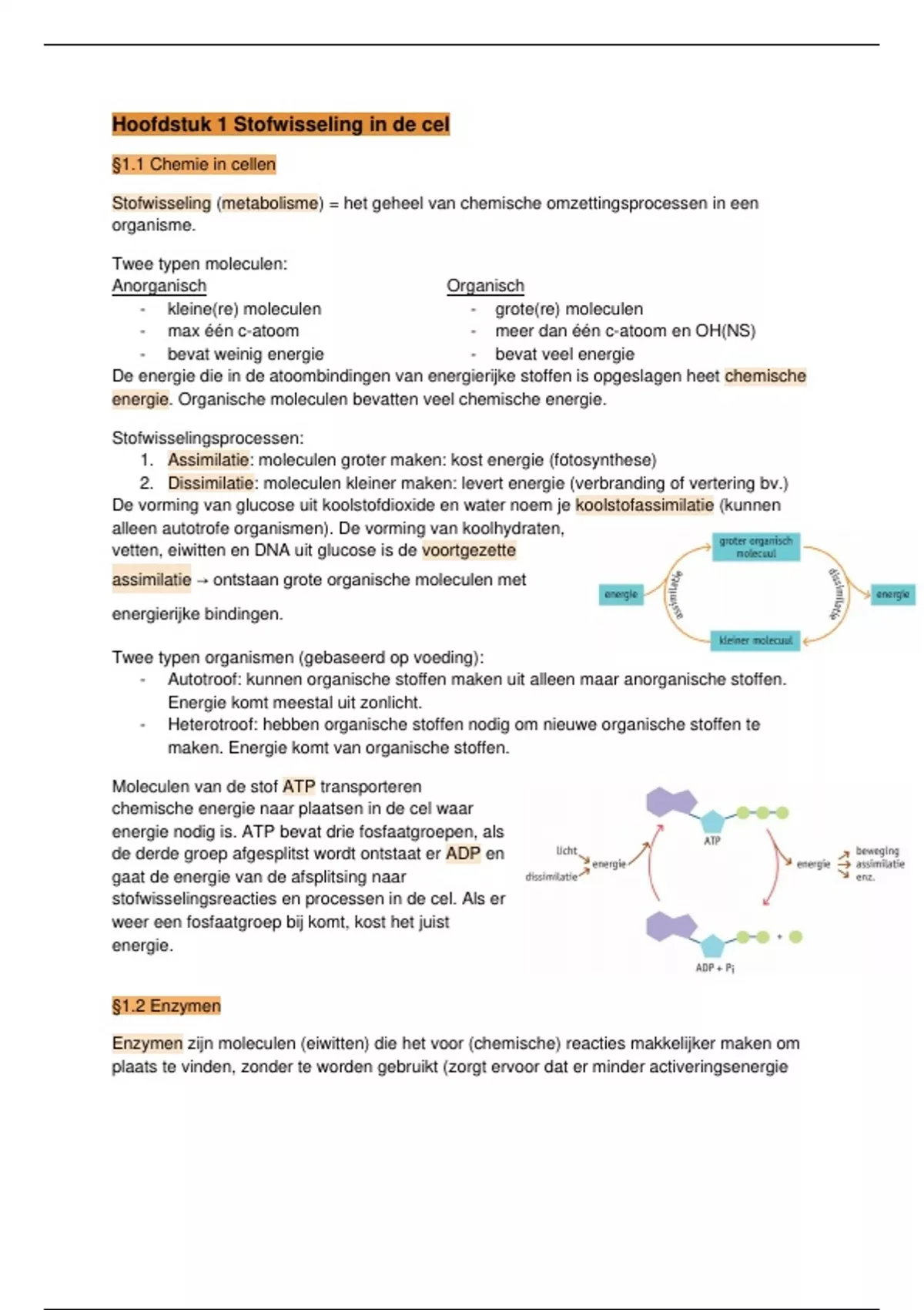 1. Assimilatie: moleculen groter maken: kost energie (fotosynthese)