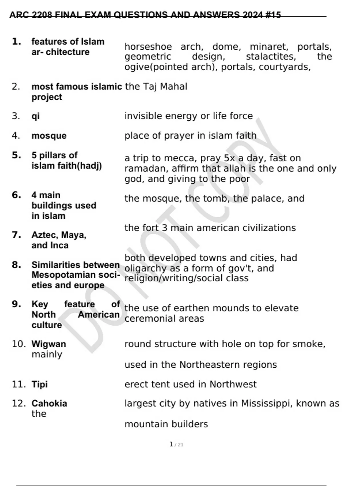 20.minaret tower for prayer ARC 2208 FINAL EXAM QUESTIONS AND ANSWERS 2024 #15