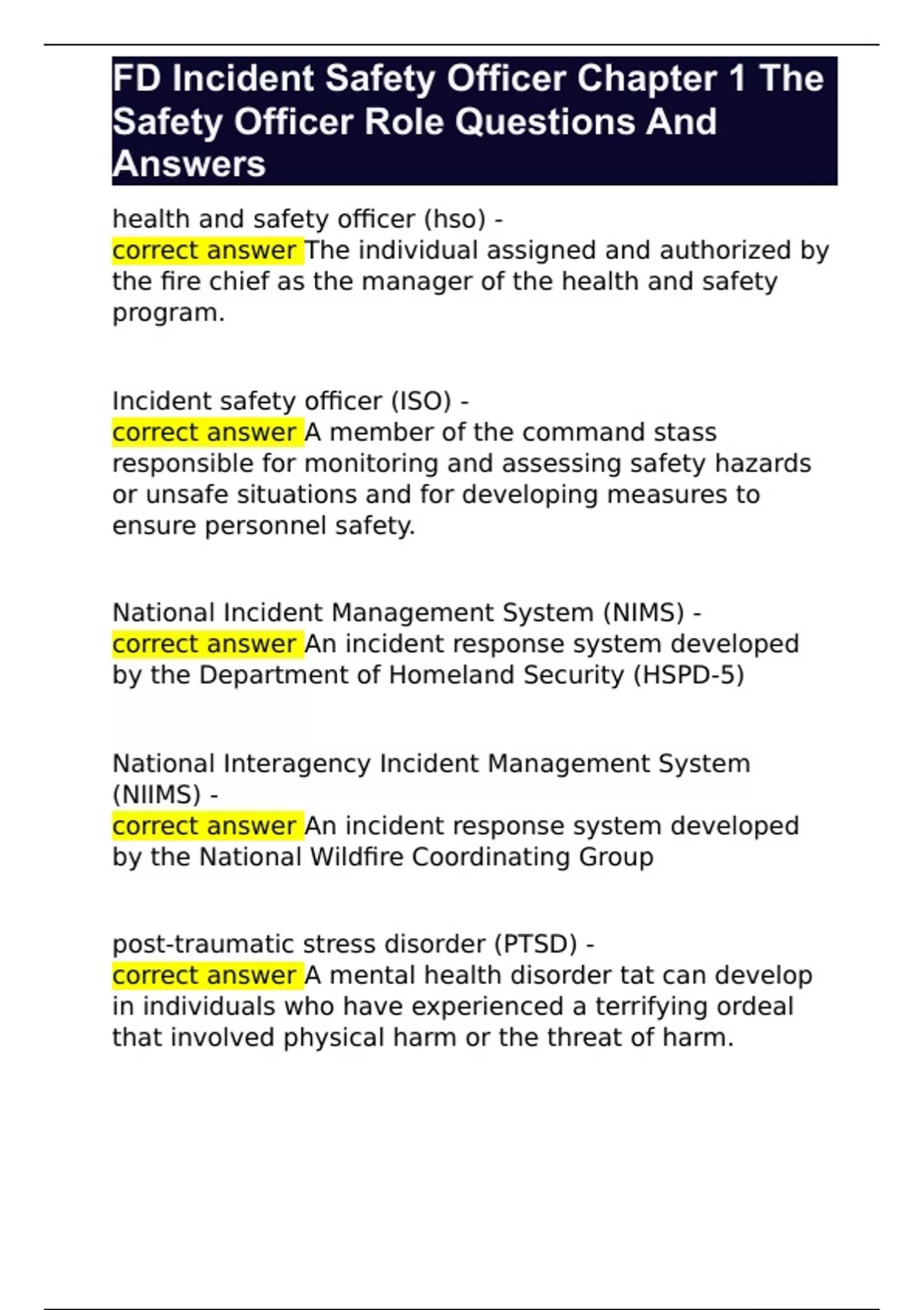 FD Incident Safety Officer Chapter 1 The Safety Officer Role Questions And Answers