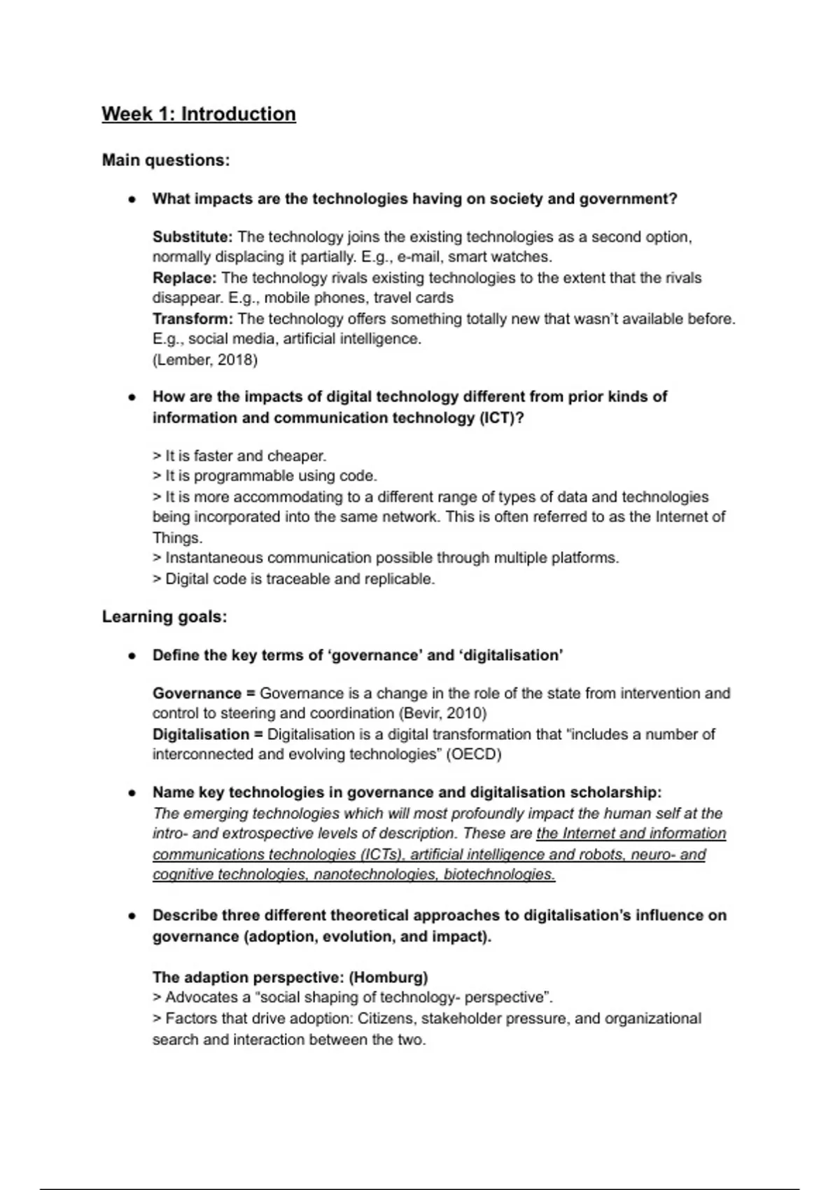Deze samenvatting, in het Engels, vat de stof van het vak Governance and Digitalisation samen. Ik verwijs ook naar de literatuur wanneer ik een theorie samenvat die volgt uit een wetenschappelijk artikel dat het vak gebruikt. Het kennen van deze auteurs plus hun werk was doorslaggevend bij het halen van dit vak.