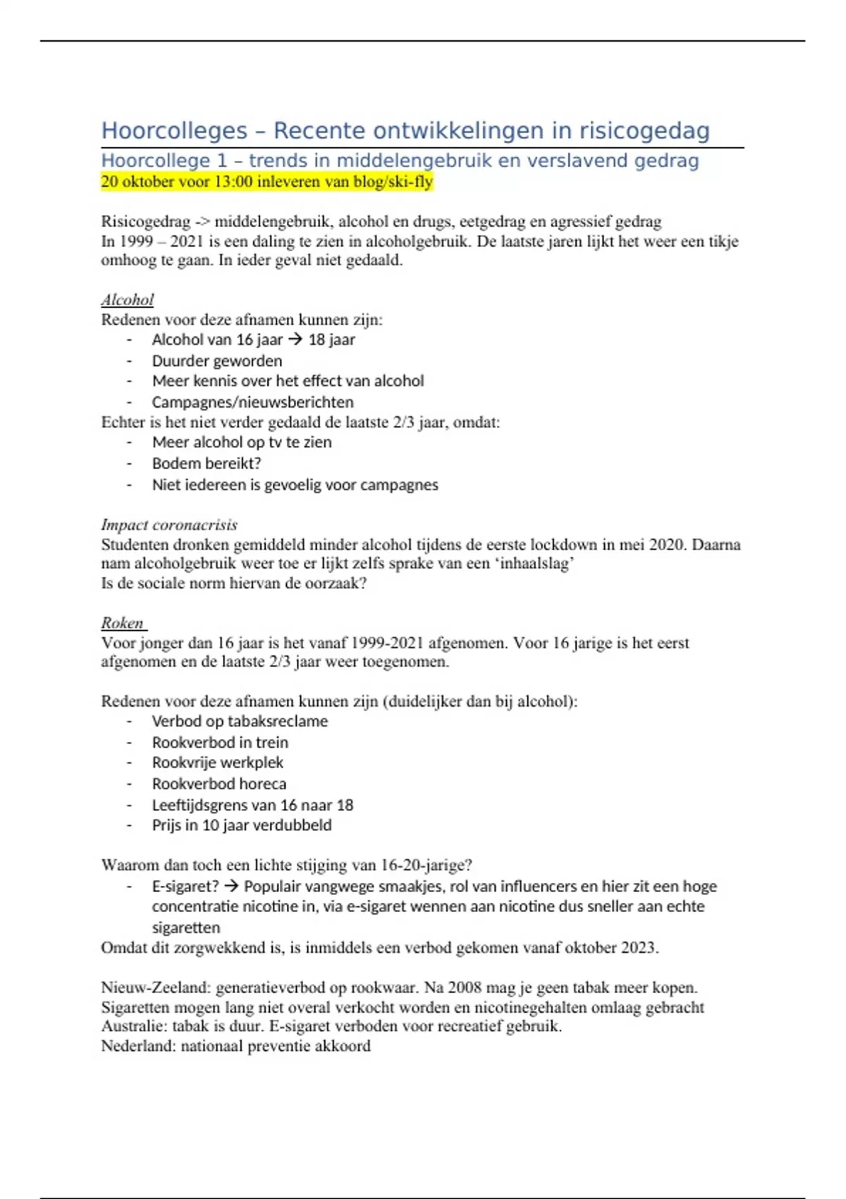 Hoorcollege 1 – trends in middelengebruik en verslavend gedrag