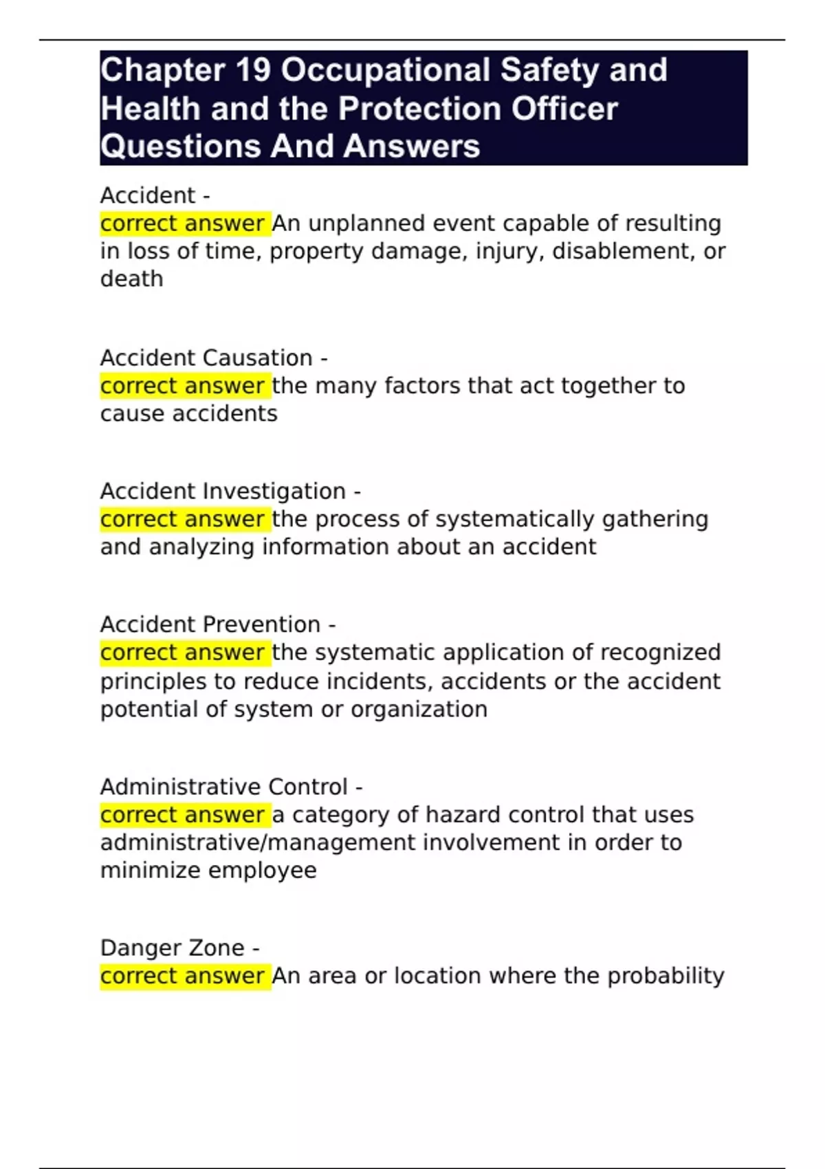 Chapter 19 Occupational Safety and Health and the Protection Officer Questions And Answers