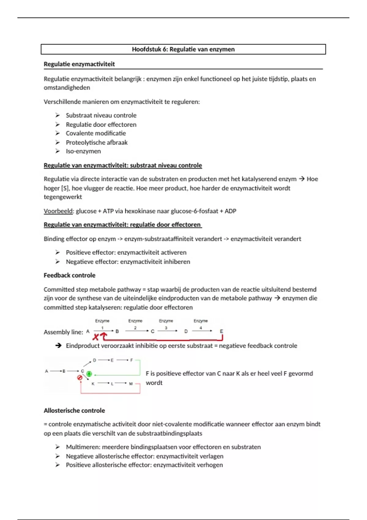 Samenvatting hoofdstuk 6 enzymologie: Regulatie van enzymen, 2e bachelor biomedische wetenschappen