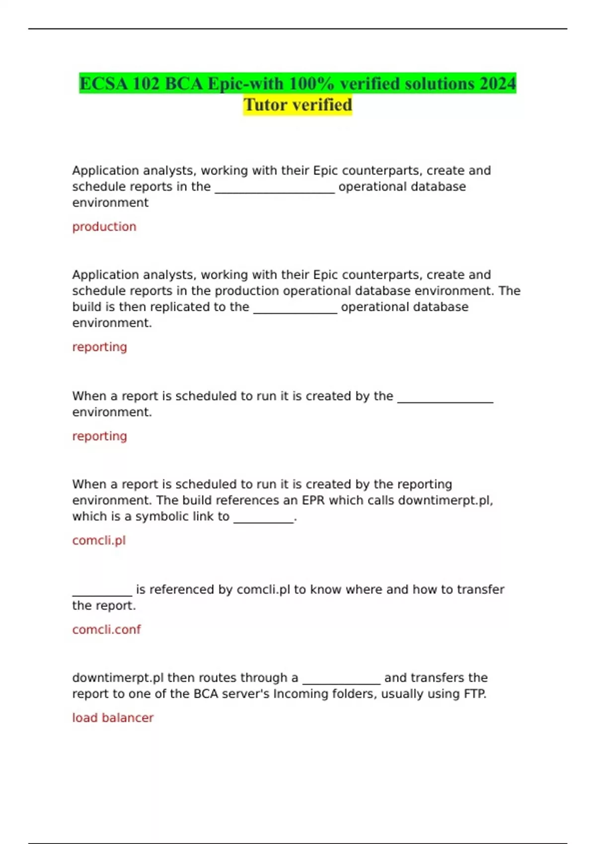 ECSA 102 BCA Epic-with 100% verified solutions 2024