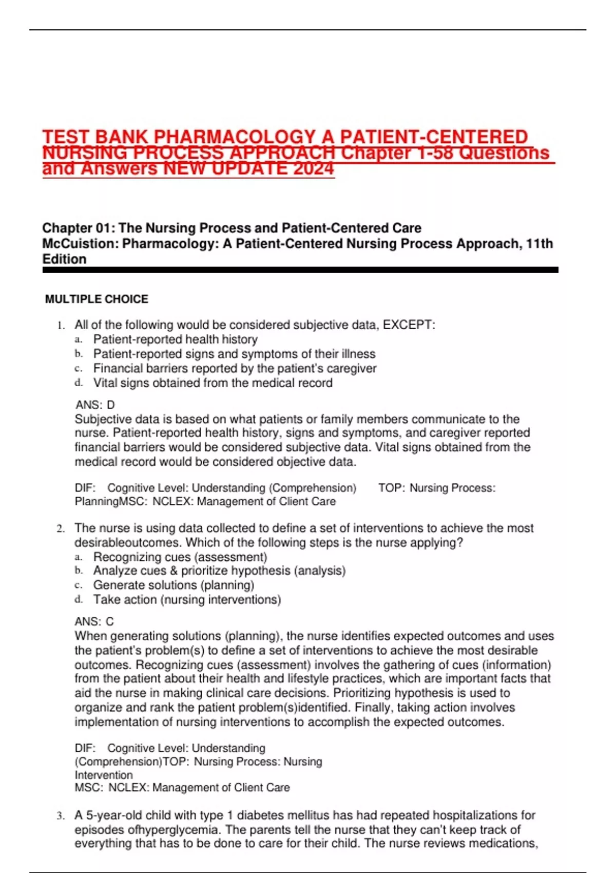 TEST BANK PHARMACOLOGY A PATIENT-CENTERED NURSING PROCESS APPROACH Chapter 1-58 Questions and Answers NEW UPDATE 2024
