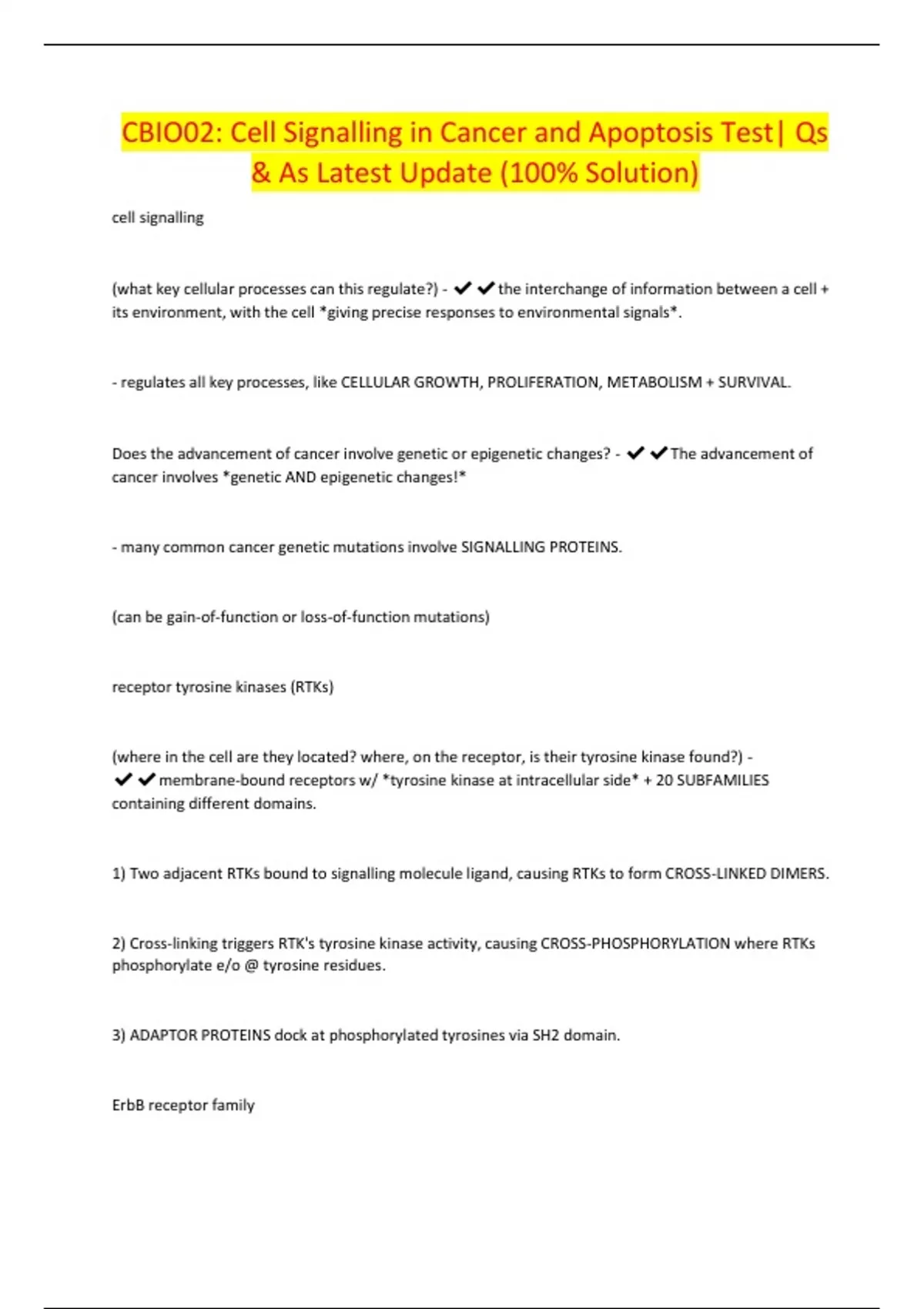 CBIO02: Cell Signalling in Cancer and Apoptosis Test| Qs & As Latest Update (100% Solution)