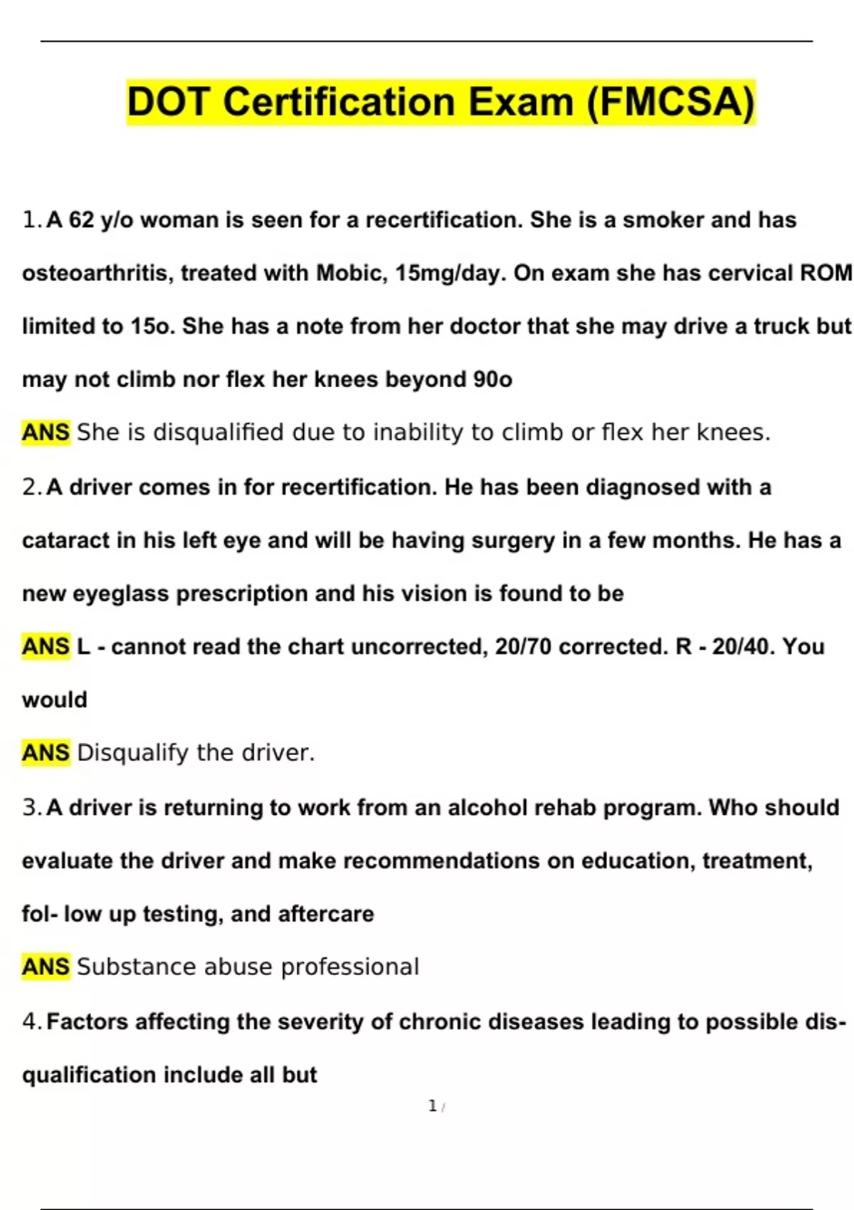 DOT Certification Exam (FMCSA) Questions and Answers (2024 / 2025) (Verified Answers)