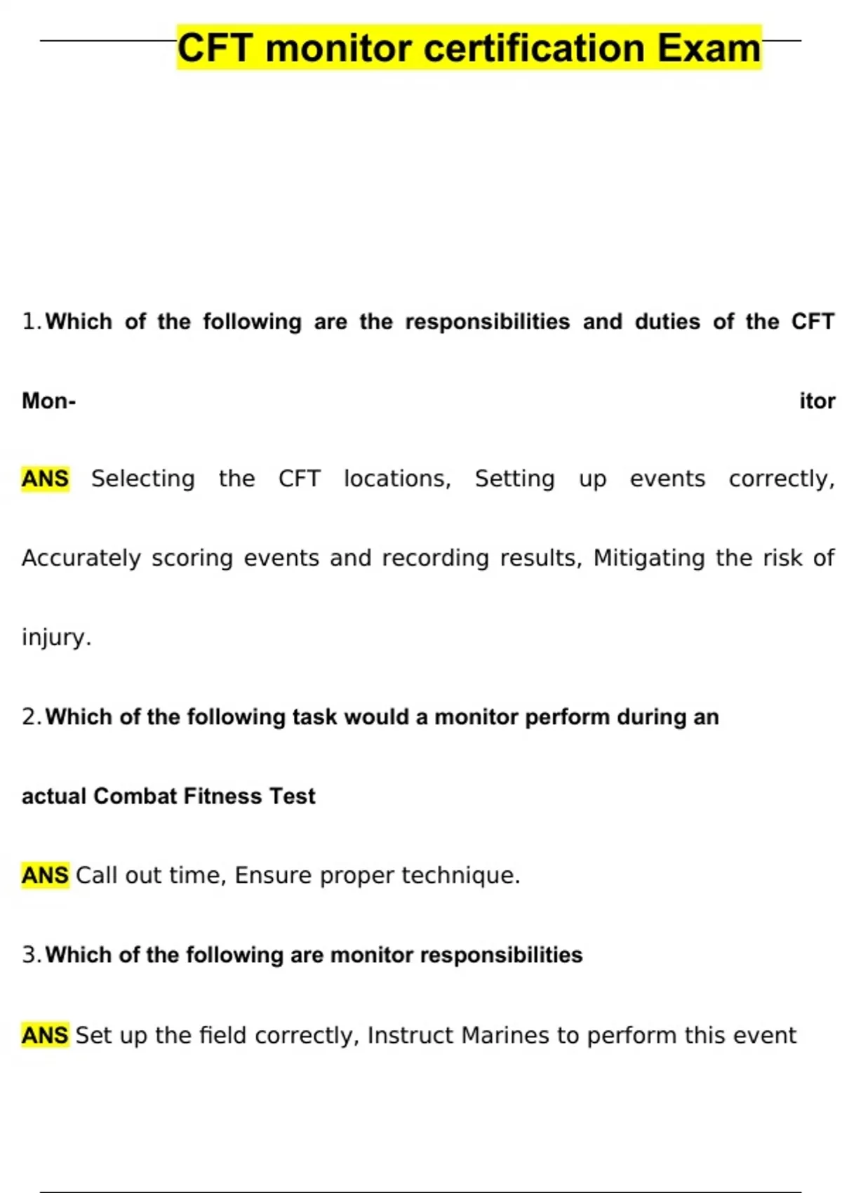 CFT monitor certification Exam Questions and Answers (2024 / 2025) (Verified Answers)