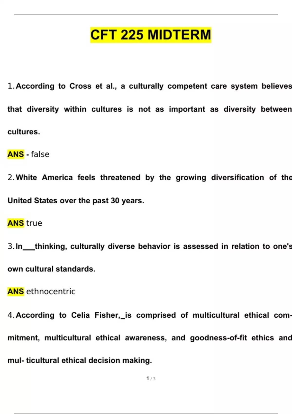CFT 225 Midterm Exam Questions and Answers (2024 / 2025) (Verified Answers)
