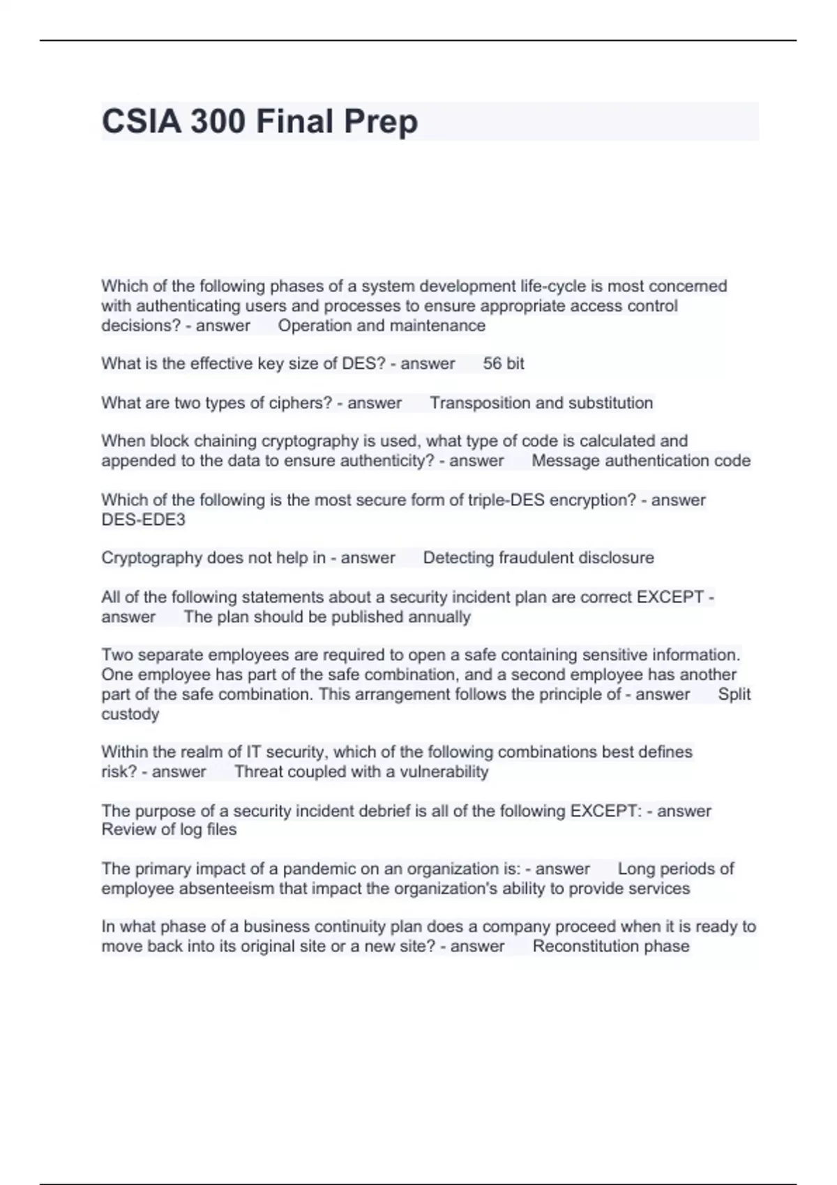 Exam of 20 pages for the course CSIA at CSIA (CSIA 300 Final Prep)