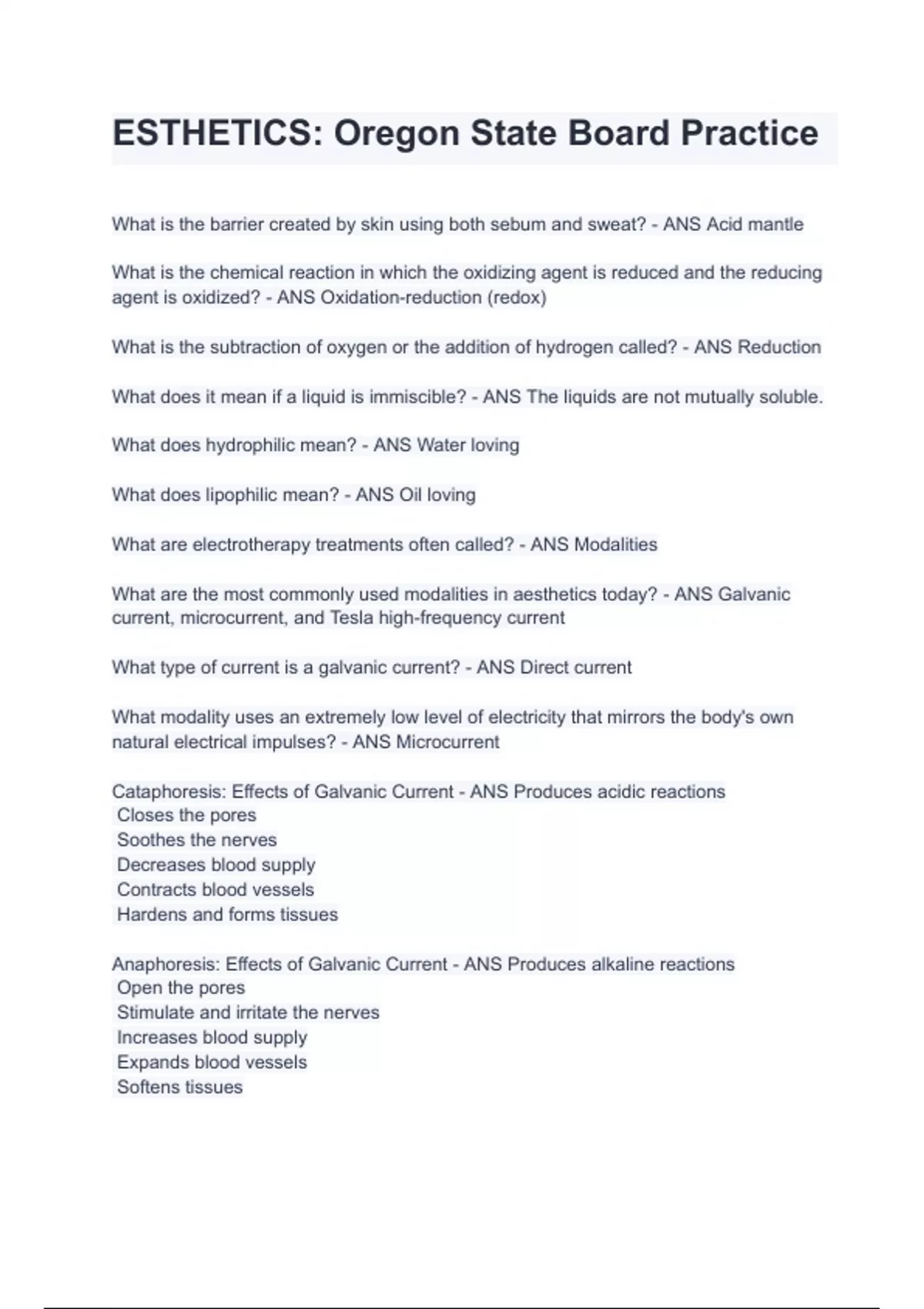ESTHETICS: Oregon State Board Practice Exam Questions With Verified Solutions.