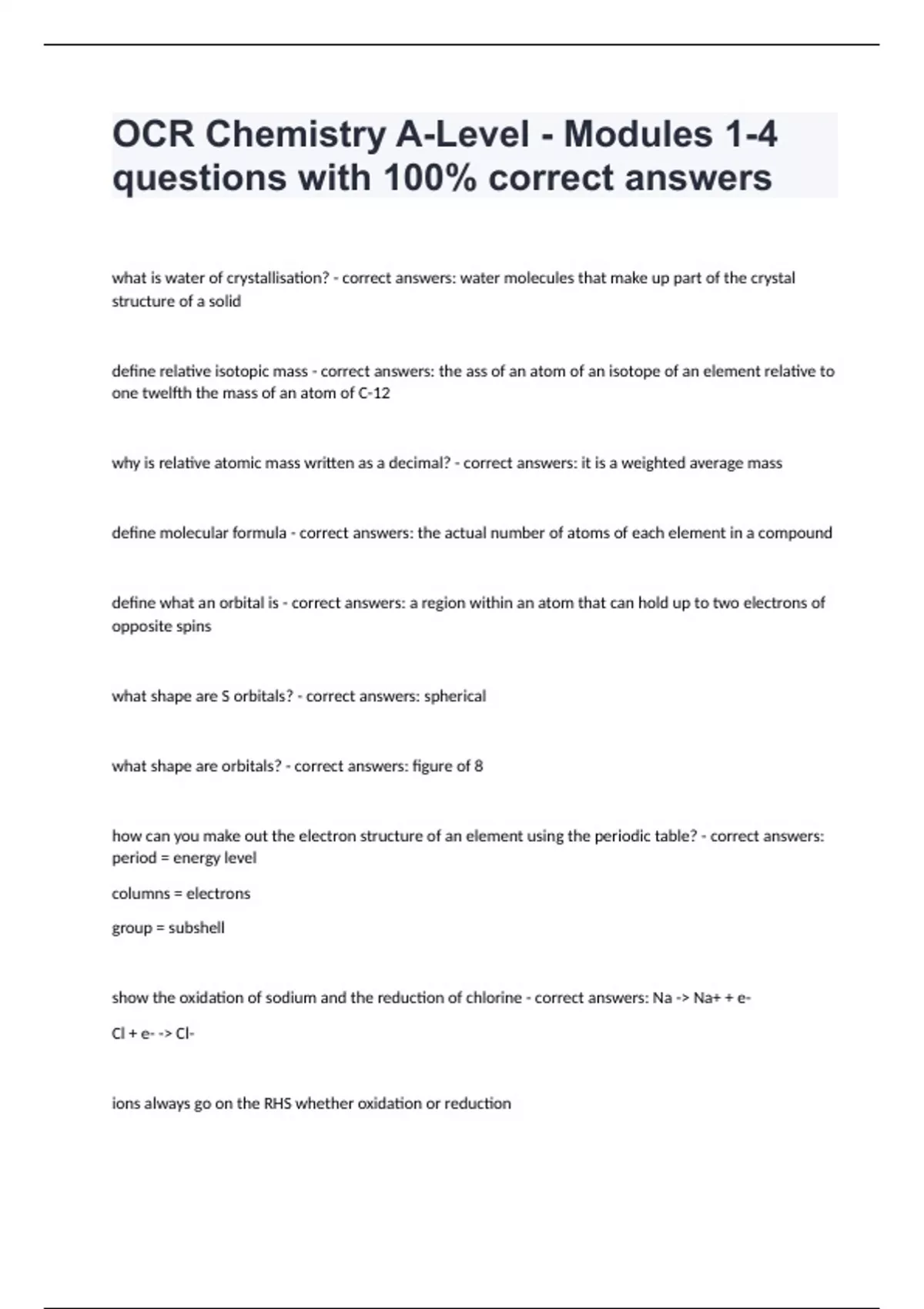 OCR Chemistry A-Level - Modules 1-4 questions with 100% correct answers