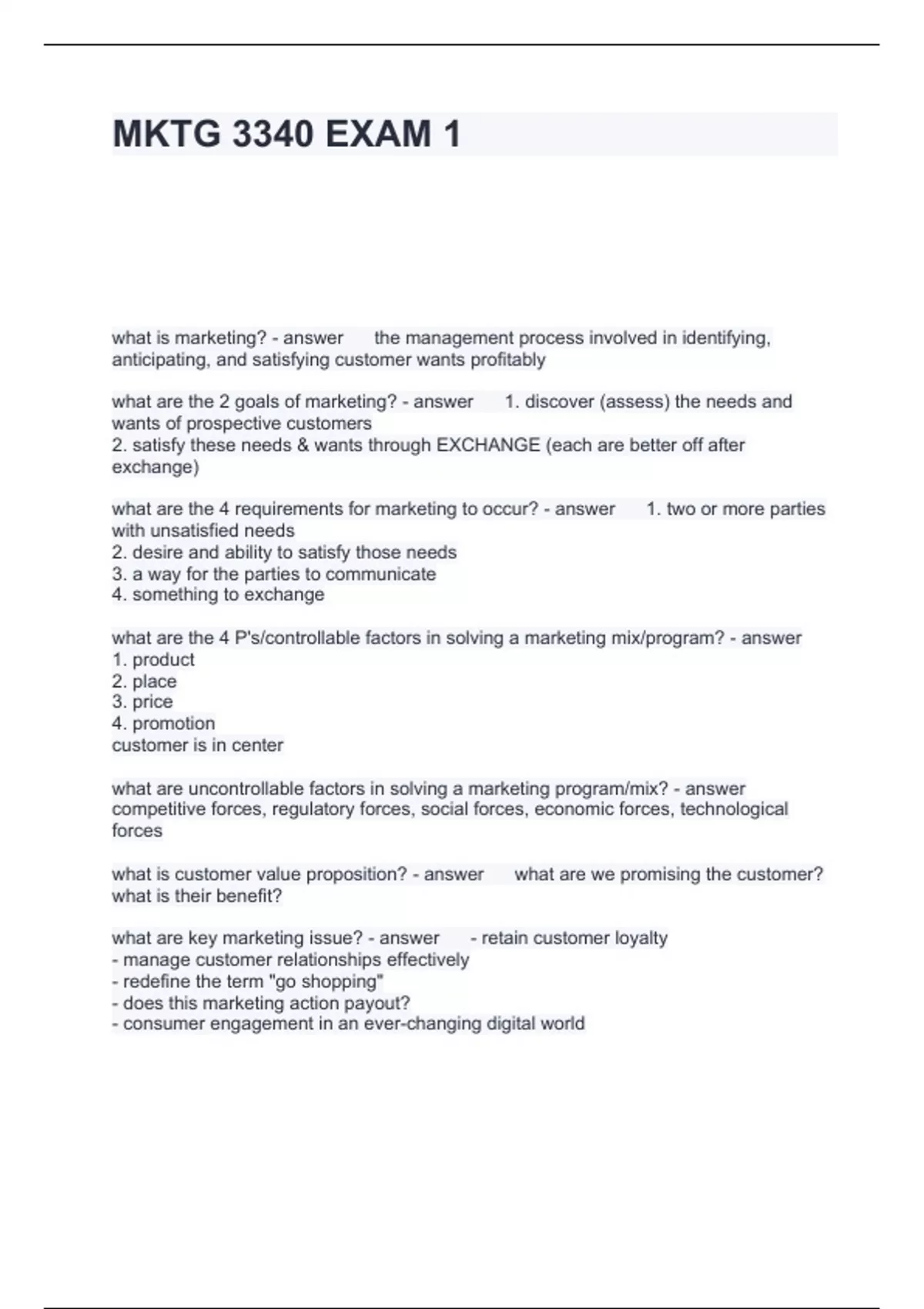 Exam of 11 pages for the course MKTG 3340 at MKTG 3340 (MKTG 3340 EXAM 1)