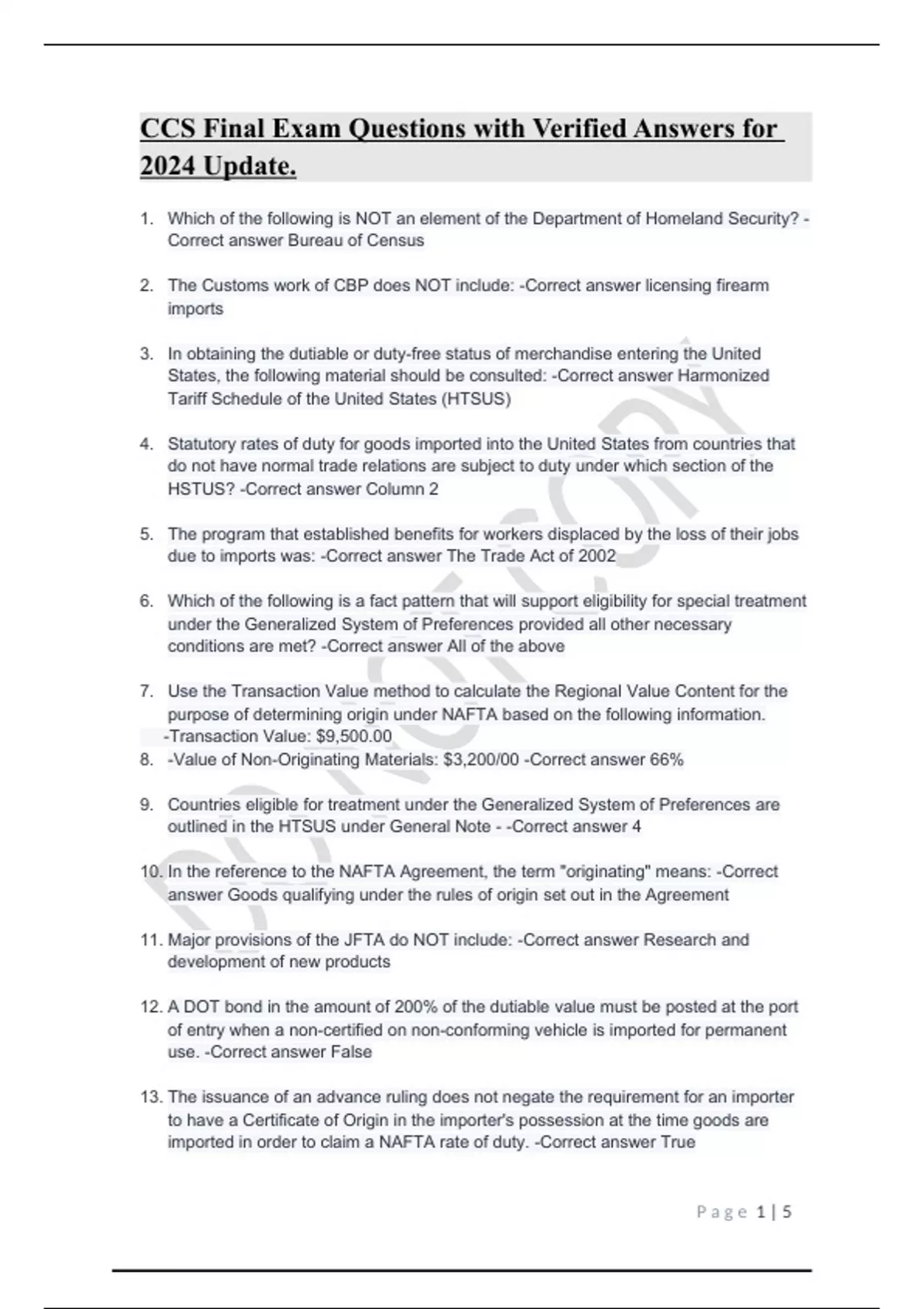 CCS Final Exam Questions with Verified Answers for 2024 Update.CCS Final Exam Questions with Verified Answers for 2024 Update.