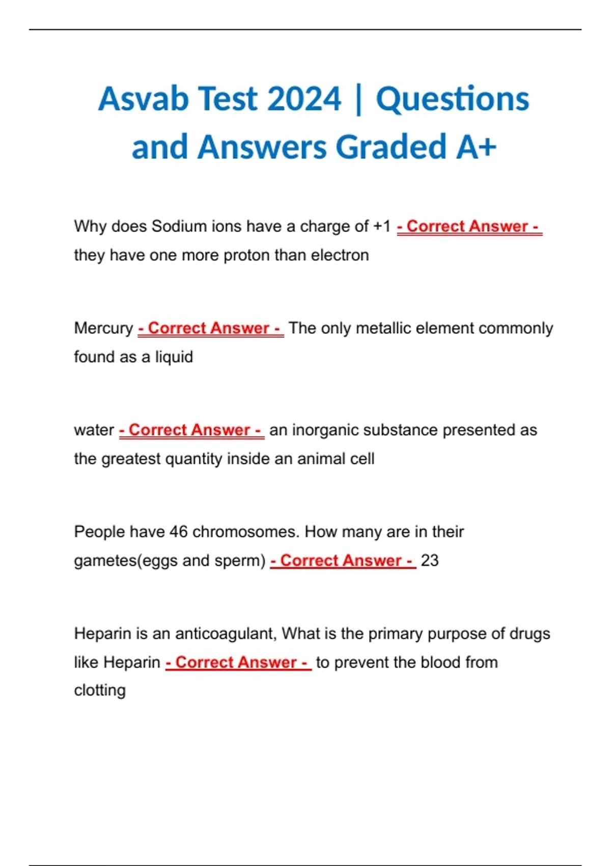 Asvab Test 2024 | Questions and Answers Graded A+ Asvab Test 2024 | Questions and Answers Graded A+ Asvab Test 2024 | Questions and Answers Graded A+