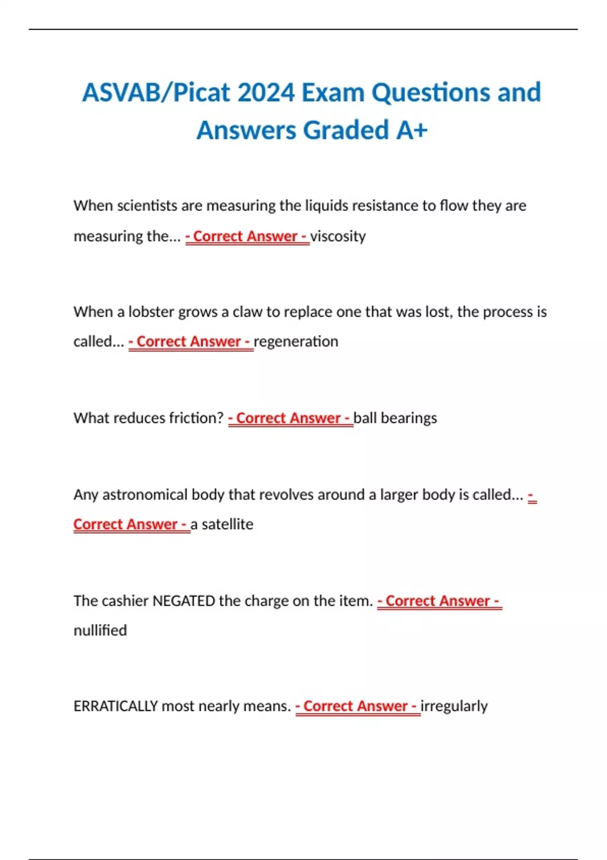 ASVAB/Picat 2024 Exam Questions and Answers Graded A+ ASVAB/Picat 2024 Exam Questions and Answers Graded A+ ASVAB/Picat 2024 Exam Questions and Answers Graded A+