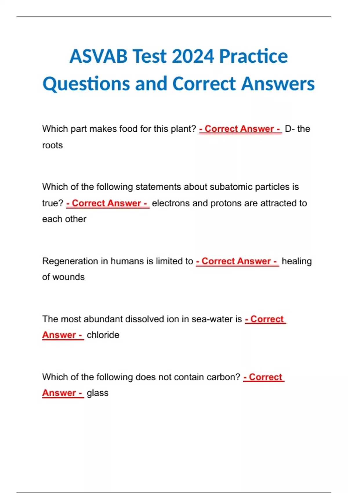 ASVAB Test 2024 Practice Questions and Correct Answers ASVAB Test 2024 Practice Questions and Correct Answers ASVAB Test 2024 Practice Questions and Correct Answers