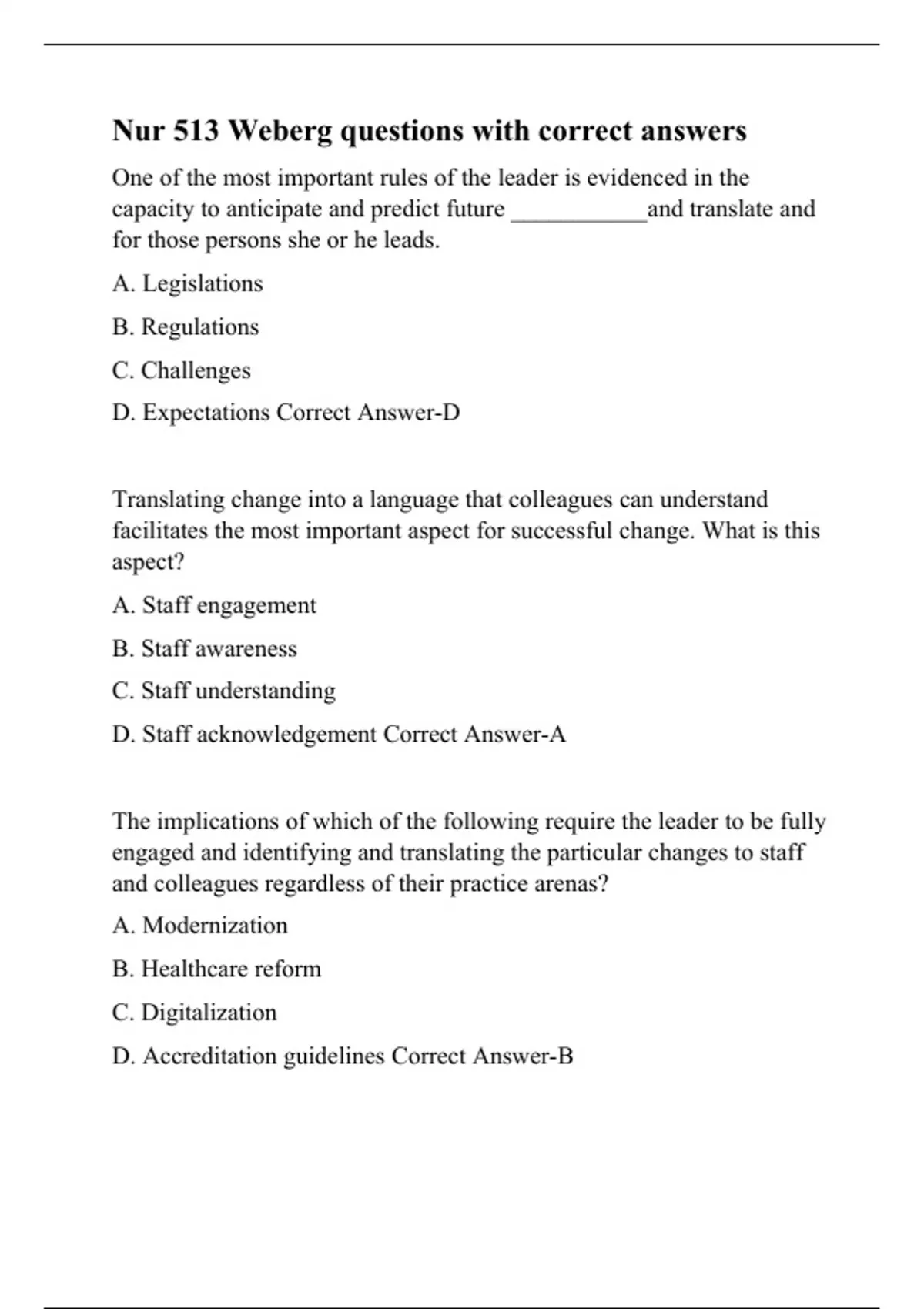 Nur 513 Weberg questions with correct answers.