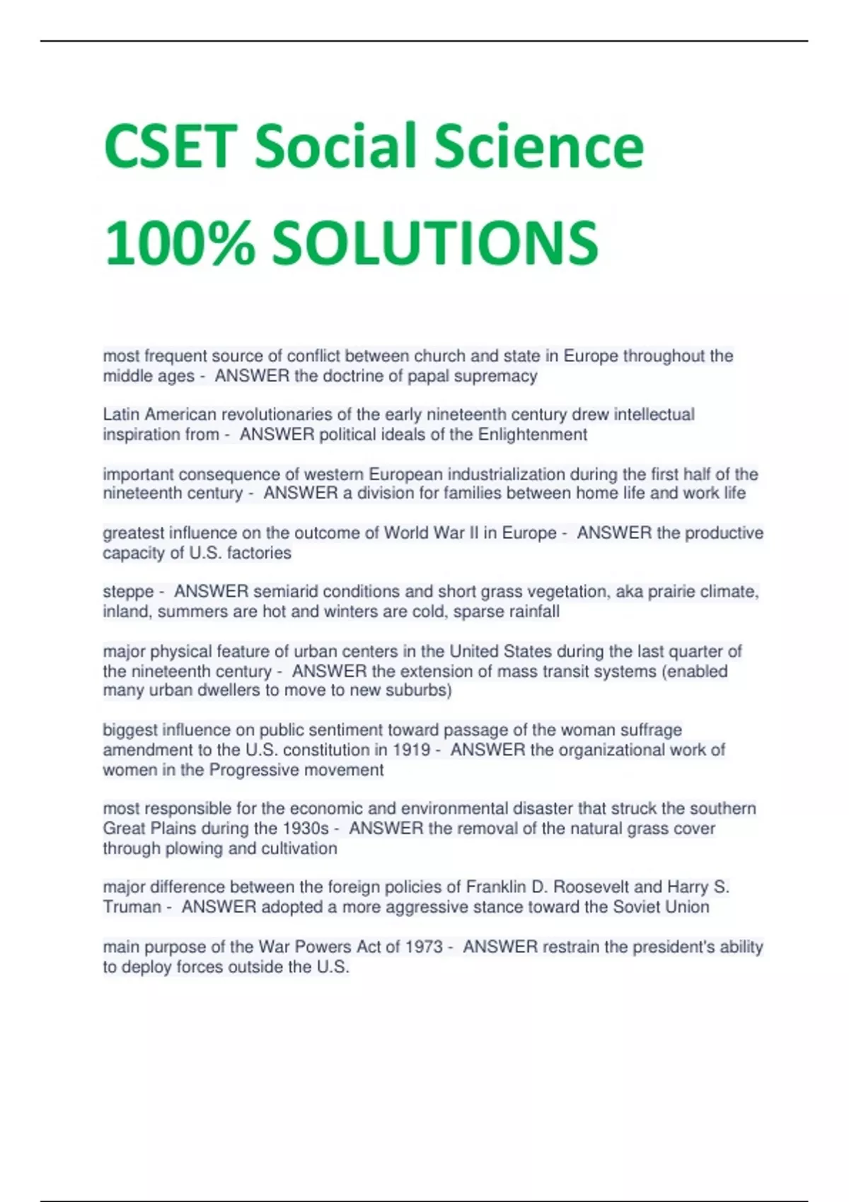 CSET Social Science 100% SOLUTIONS