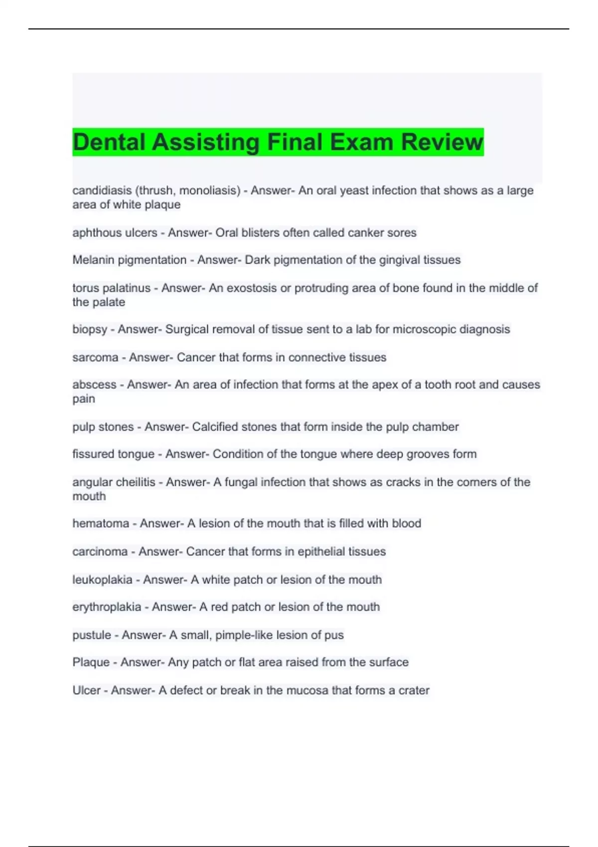 Dental Assisting Final Exam Review 2024 Questions and Answers