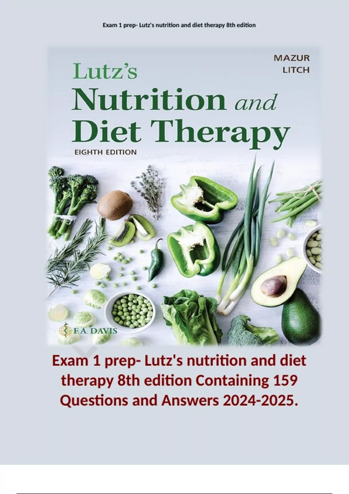Exam 1 prep- Lutz's nutrition and diet therapy 8th edition Containing 159 Questions and Answers .
