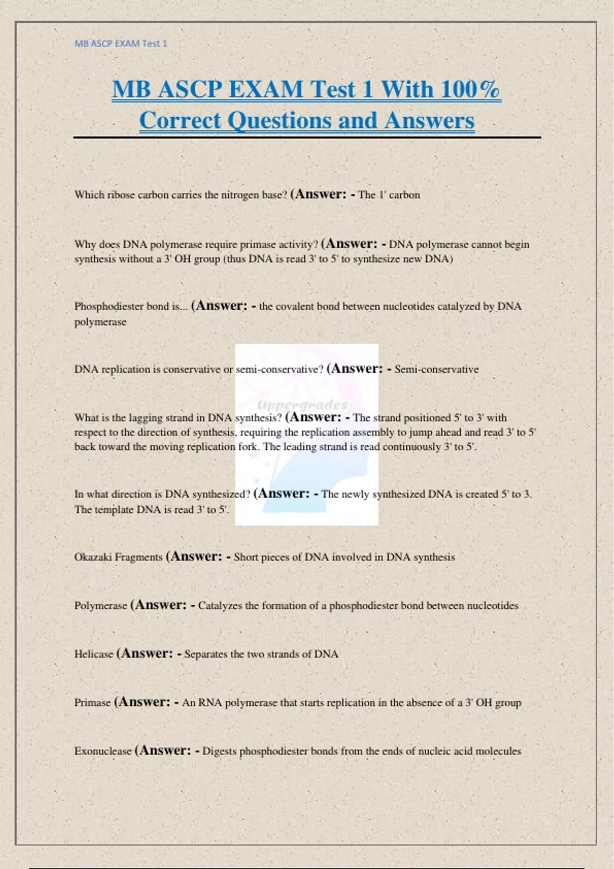MB ASCP EXAM Test 1 With 100% Correct Questions and Answers,MB ASCP EXAM Test 1 With 100% Correct Questions and Answers
