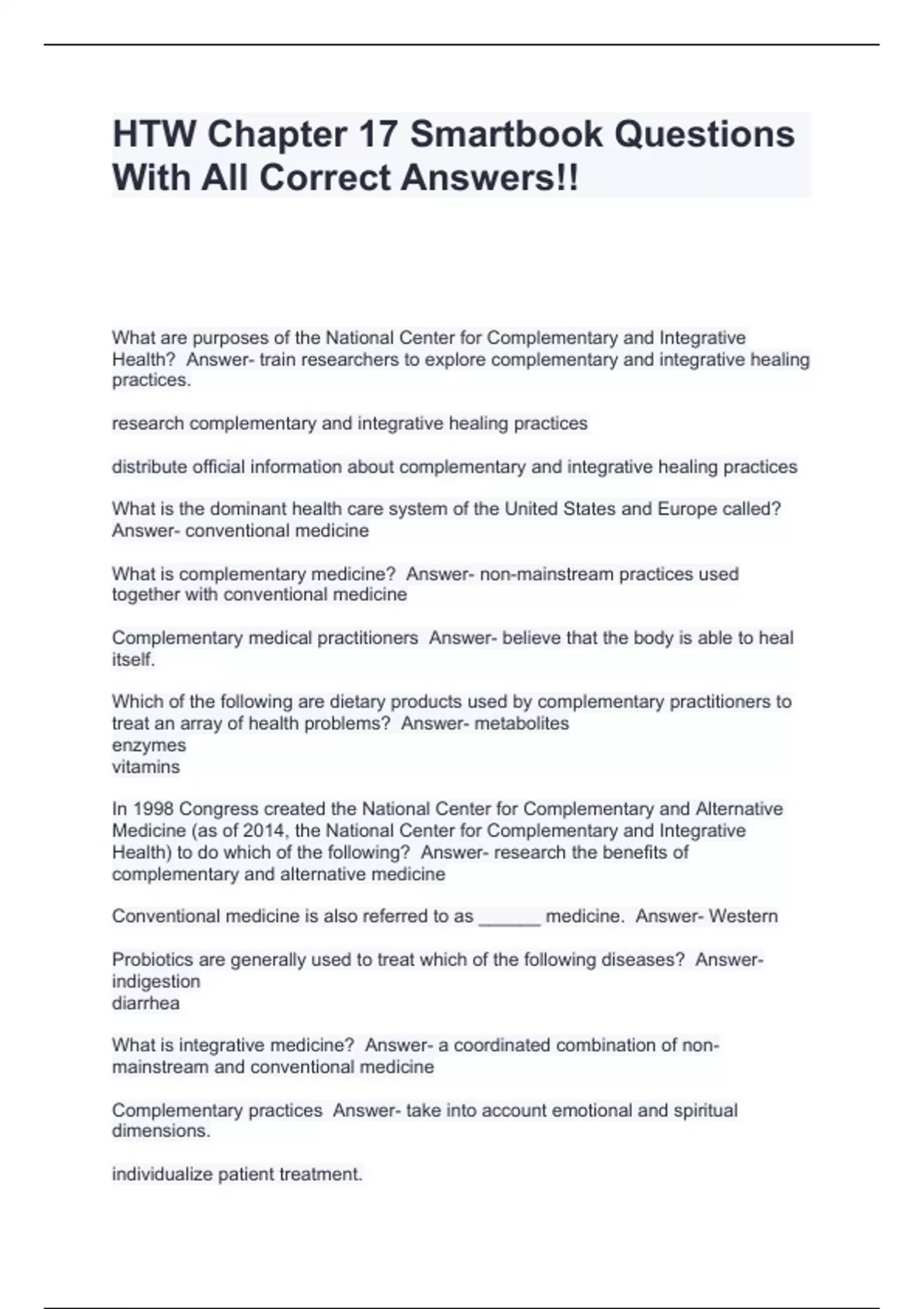 HTW Chapter 17 Smartbook Questions With All Correct Answers!!