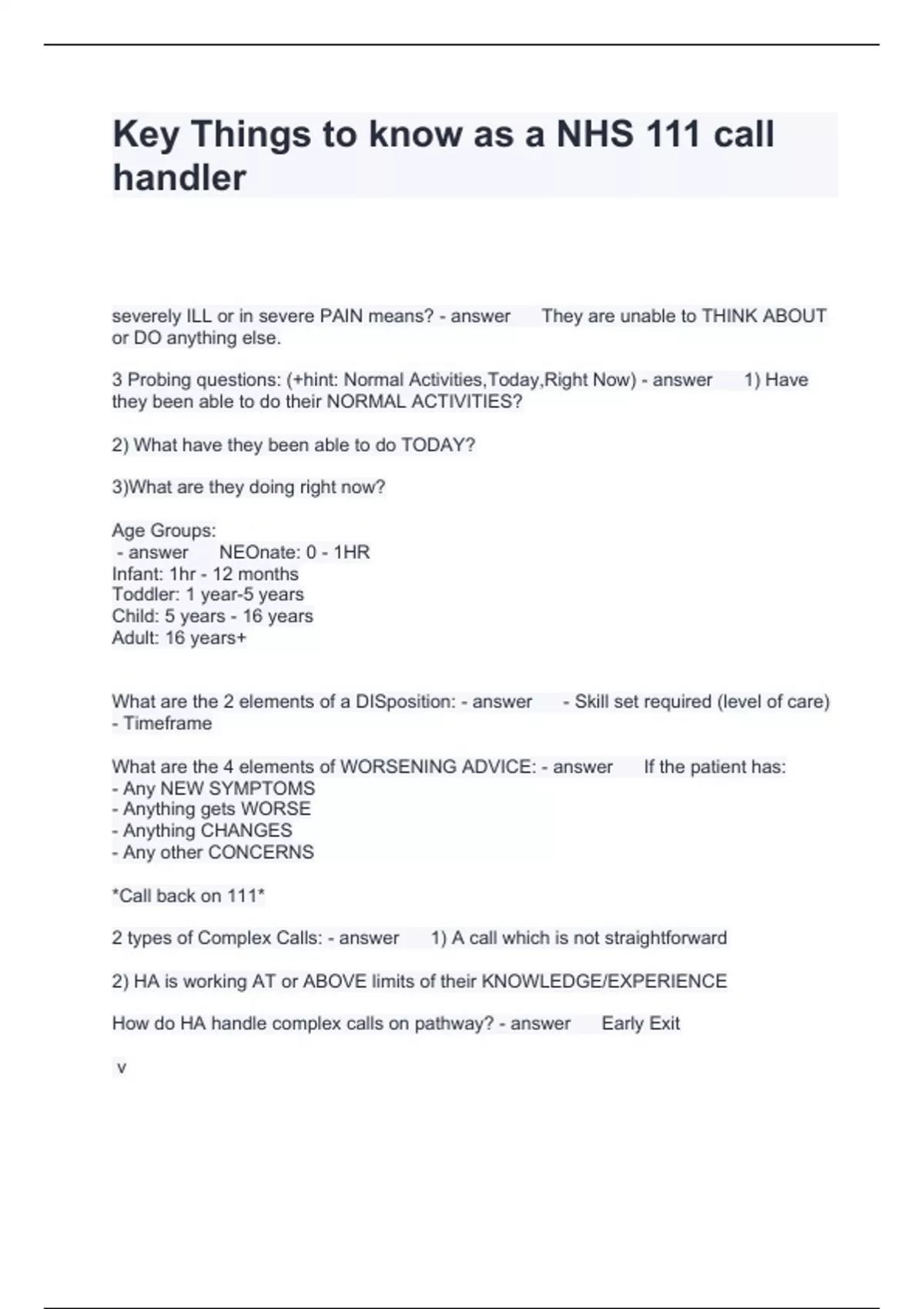 Key Things to know as a NHS 111 call handler Questions and Answers 100% Solved