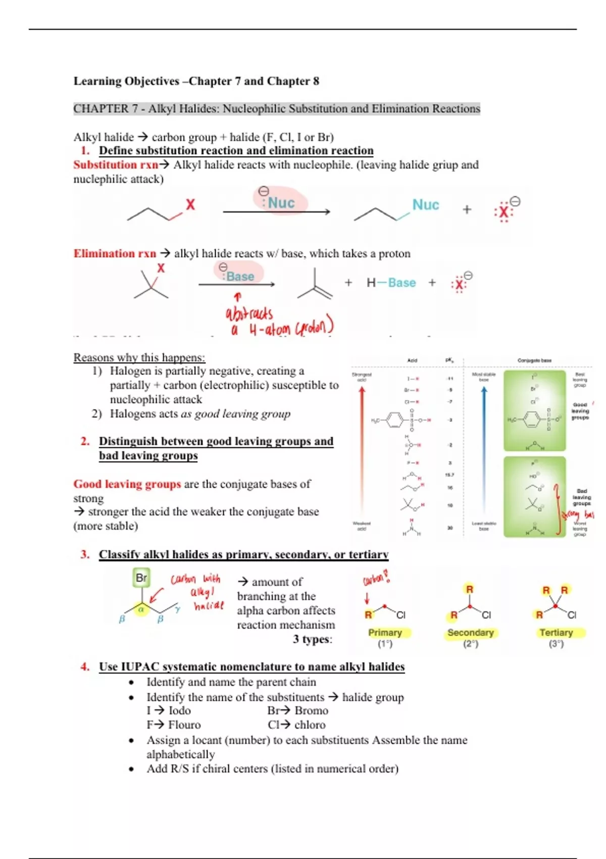 2. Distinguish between good leaving groups and
