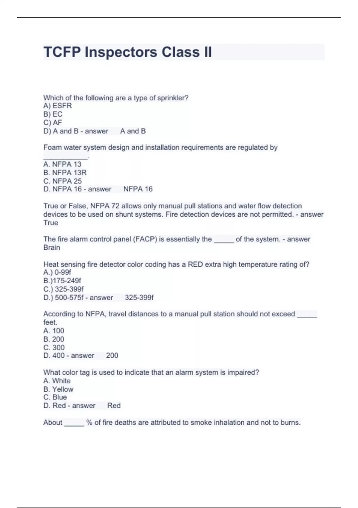 TCFP Inspectors Class II Questions and Answers Graded A+